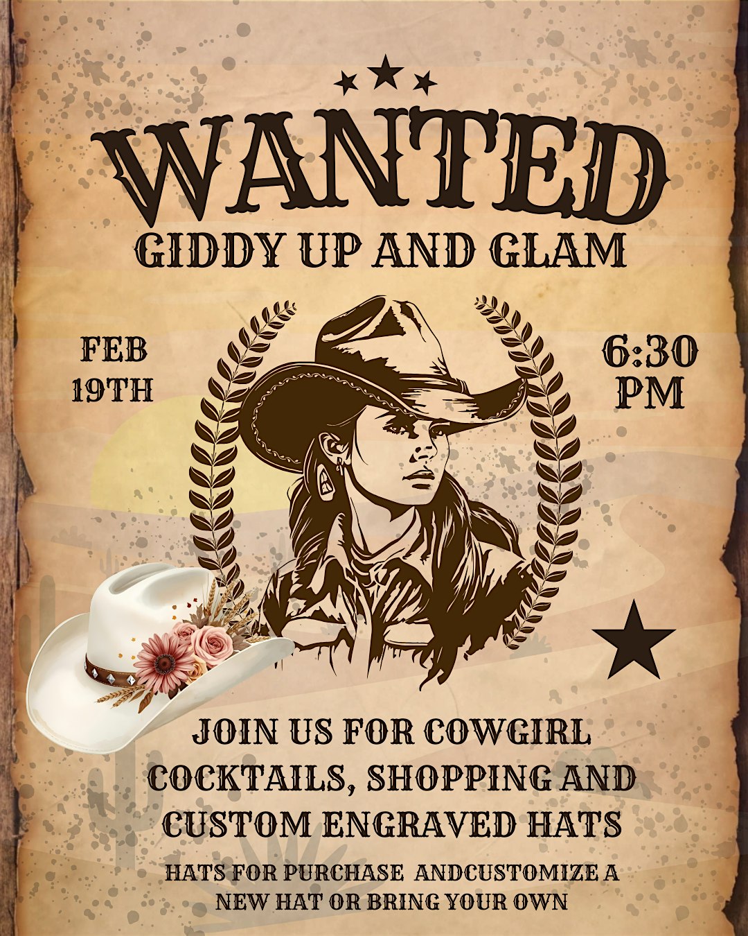 by admin13Feb Giddyup and Glam Girls Night at 2255 N Loop 336 W – Conroe, TX Giddyup and Glam Girls Night at 2255 N Loop 336 W – Conroe, TX 2 2 people viewed this event. WANTED: All ladies who want a fun night and a new custom hat! Join us for cowgirl cocktails and leave with a personalized hat. Tickets-RSVP Link Date And Time Friday, February 20th, 2026 12:00 AM (PST) Venue 2255 N Loop 336 W Location 2255 North Loop 336 West, Conroe, TX 77304 Event Types Fashion & BeautyParty or Social Gathering Event Category Texas Share With Friends Facebook Twitter Linkedin Xing Pinterest Share This Post: