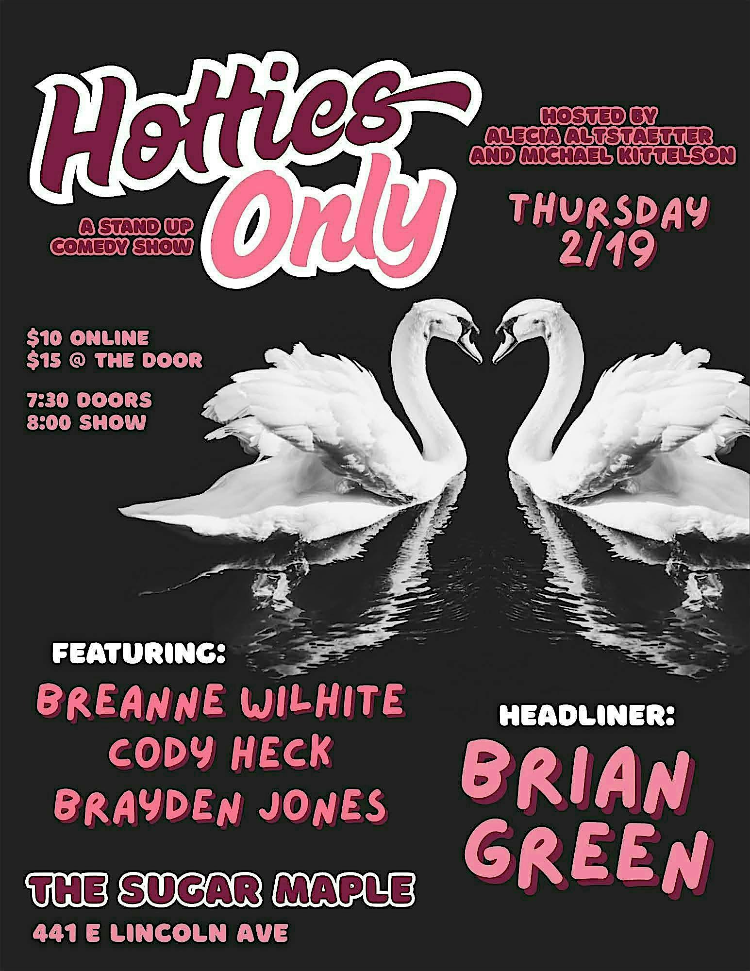 by admin12Feb Hotties Only Standup Comedy: Brian Green at The Sugar Maple at 441 E Lincoln Ave – Milwaukee, WI Hotties Only Standup Comedy: Brian Green at The Sugar Maple at 441 E Lincoln Ave – Milwaukee, WI 4 4 people viewed this event. Hotties Only is a standup comedy show featuring the hottest comics in the Midwest! It all takes place at The Sugar Maple in the back room! Tickets-RSVP Link Date And Time Friday, February 20th, 2026 02:00 AM (PST) Venue 441 E Lincoln Ave Location 441 East Lincoln Avenue, Milwaukee, WI 53207 Event Types ComedyConcert or PerformancePerforming & Visual Arts Event Category MilwaukeeWisconsin Share With Friends Facebook Twitter Linkedin Xing Pinterest Share This Post: