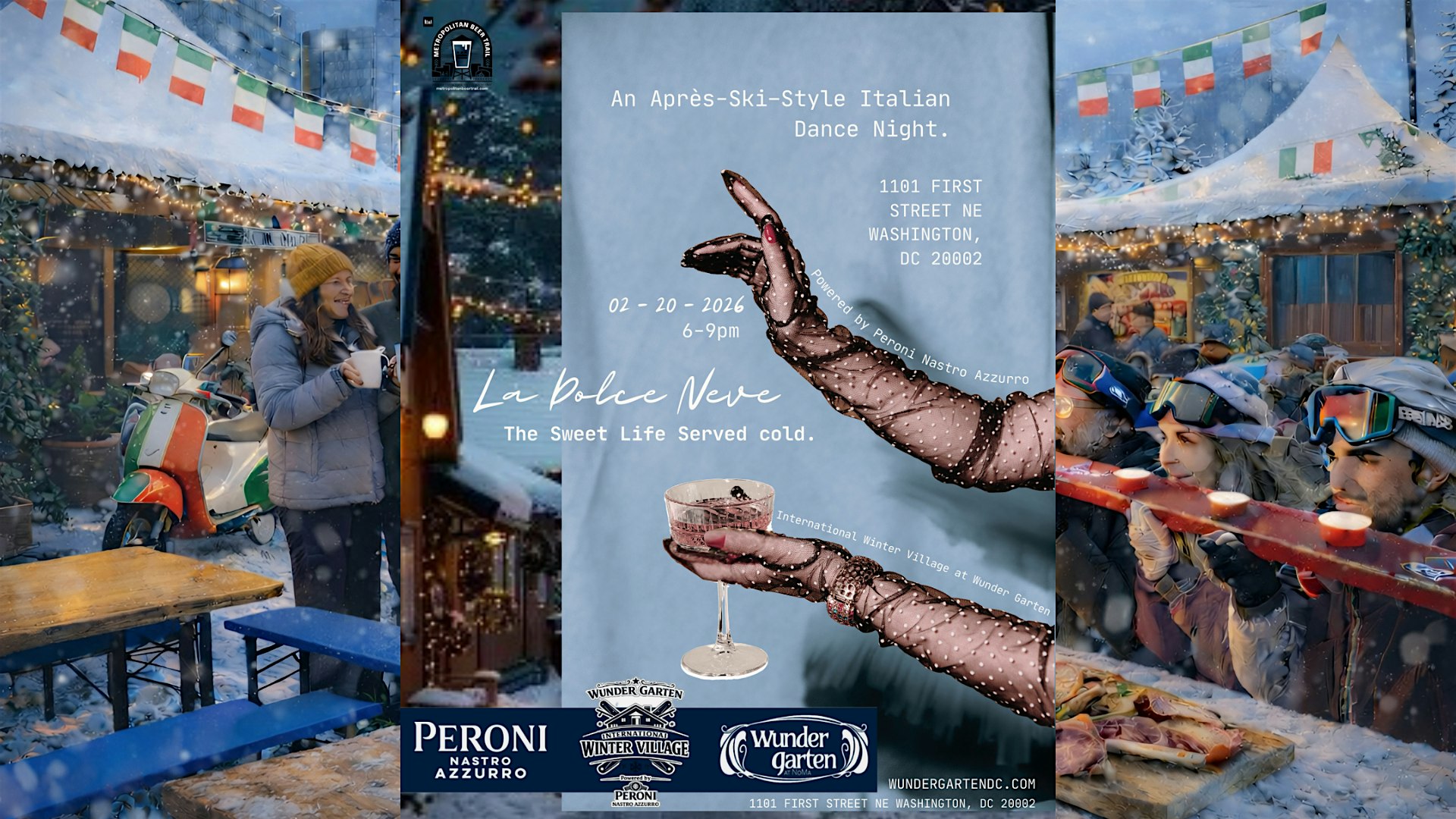 by admin12Feb La Dolce Neve : The Sweet Life, Served Cold at Wunder Garten – Washington, DC La Dolce Neve : The Sweet Life, Served Cold at Wunder Garten – Washington, DC 3 3 people viewed this event. An Après-Ski–Style Italian Dance Night Tickets-RSVP Link Date And Time Friday, February 20th, 2026 11:00 PM (PST) Venue Wunder Garten Location 1101 First Street Northeast, Washington, DC 20002 Event Types Party or Social GatheringSeasonal & Holiday Event Category Washington DC Share With Friends Facebook Twitter Linkedin Xing Pinterest Share This Post: