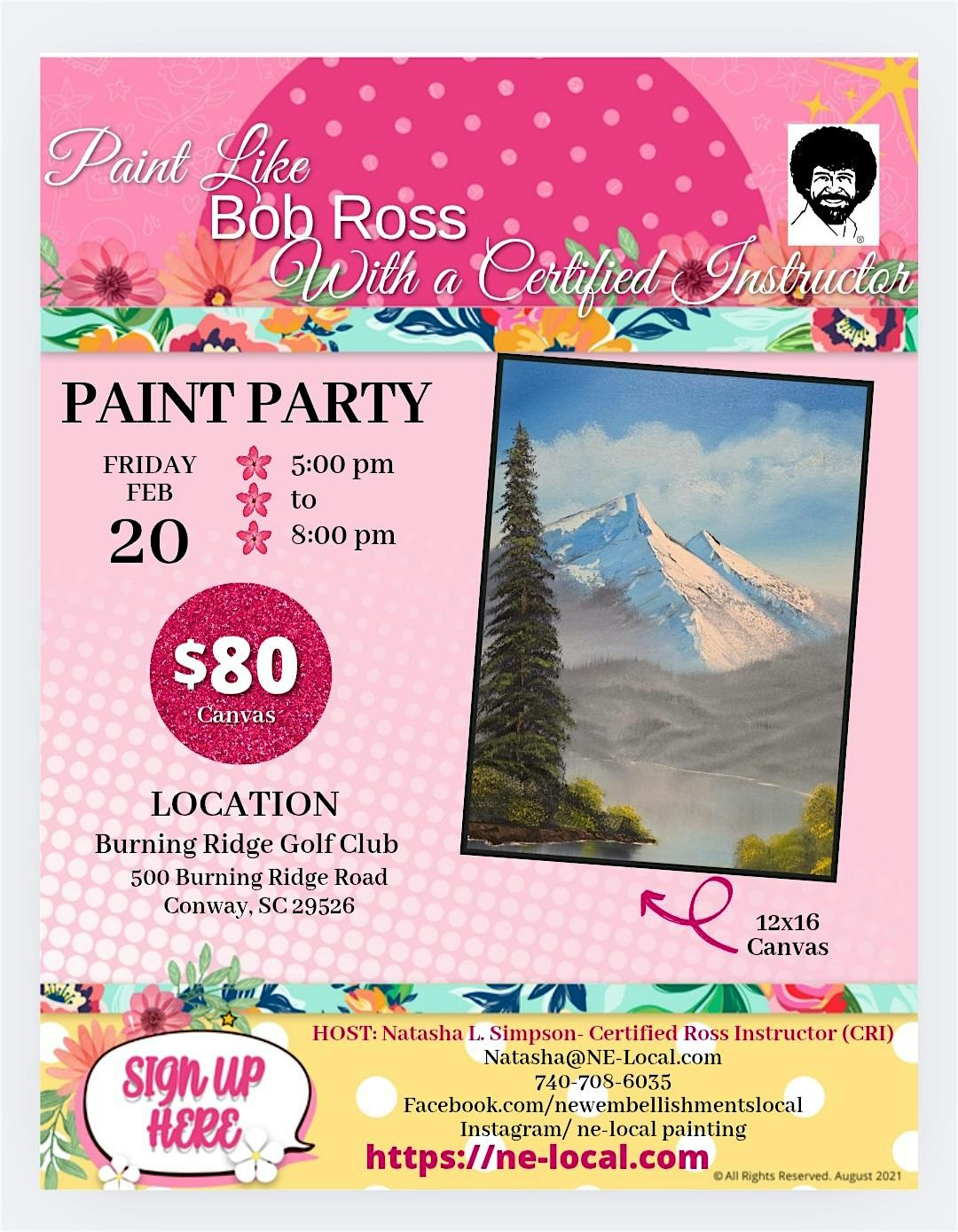 by admin13Feb Lazy River- Bob Ross Style Oil Painting Class at Burning Ridge Golf Club – Conway, SC Lazy River- Bob Ross Style Oil Painting Class at Burning Ridge Golf Club – Conway, SC 2 2 people viewed this event. Learn to paint a complete 12×16” oil painting with step-by-step guidance from Certified Ross Instructor®, Natasha L. Simpson. Tickets-RSVP Link Date And Time Friday, February 20th, 2026 10:00 PM (PST) Venue Burning Ridge Golf Club Location 500 Burning Ridge Road, Conway, SC 29526 Event Types Performing & Visual Arts Event Category South Carolina Share With Friends Facebook Twitter Linkedin Xing Pinterest Share This Post: