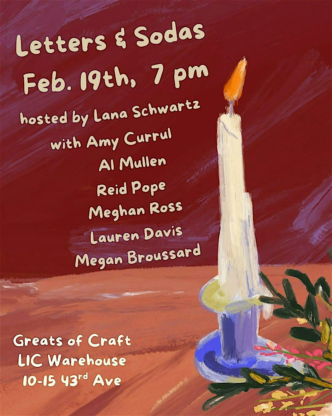 by admin13Feb Letters & Sodas: LIC Reading Series at The Greats of Craft LIC – Queens, NY Letters & Sodas: LIC Reading Series at The Greats of Craft LIC – Queens, NY 1 1 people viewed this event. The best writers, comedians, and writer-comedians in NYC read & perform their original works Tickets-RSVP Link Date And Time Friday, February 20th, 2026 12:00 AM (PST) Venue The Greats of Craft LIC Location 10-15 43rd Avenue, Queens, NY 11101 Event Types Concert or PerformancePerforming & Visual Arts Event Category New YorkNew York City Share With Friends Facebook Twitter Linkedin Xing Pinterest Share This Post: