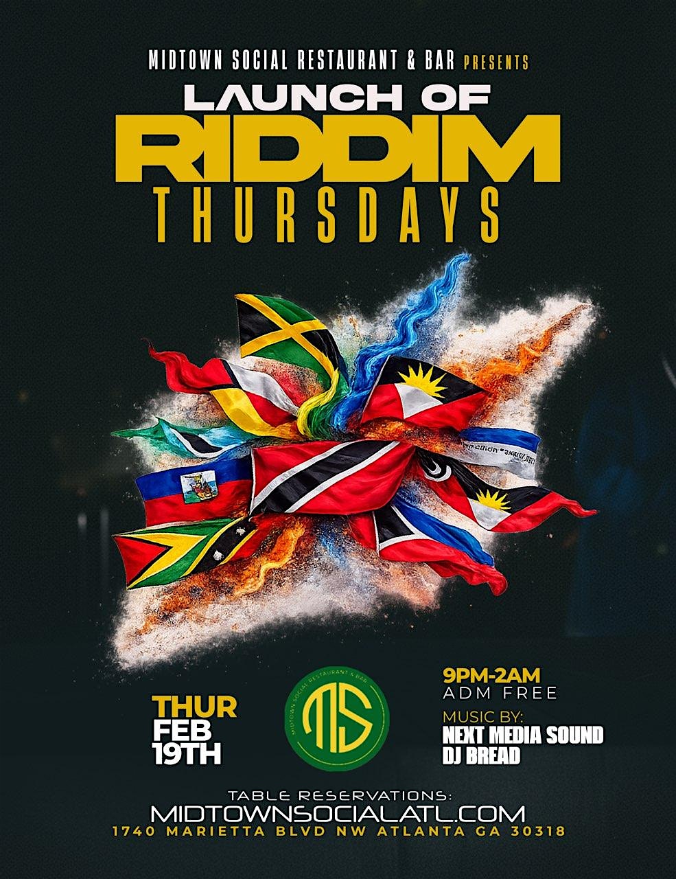 by admin13Feb Riddim Thursday’s… each and every Thursday’s . at 1740 Marietta Blvd NW – Atlanta, GA Riddim Thursday’s… each and every Thursday’s . at 1740 Marietta Blvd NW – Atlanta, GA 1 1 people viewed this event. If Dancehall, Soca, & Caribbean anthems live in your soul… this is your night. Every Thursday we’re turning Midtown Tickets-RSVP Link Date And Time Friday, February 20th, 2026 02:00 AM (PST) Venue 1740 Marietta Blvd NW Location 1740 Marietta Boulevard Northwest, Atlanta, GA 30318 Event Types MusicParty or Social Gathering Event Category AtlantaGeorgia Share With Friends Facebook Twitter Linkedin Xing Pinterest Share This Post: