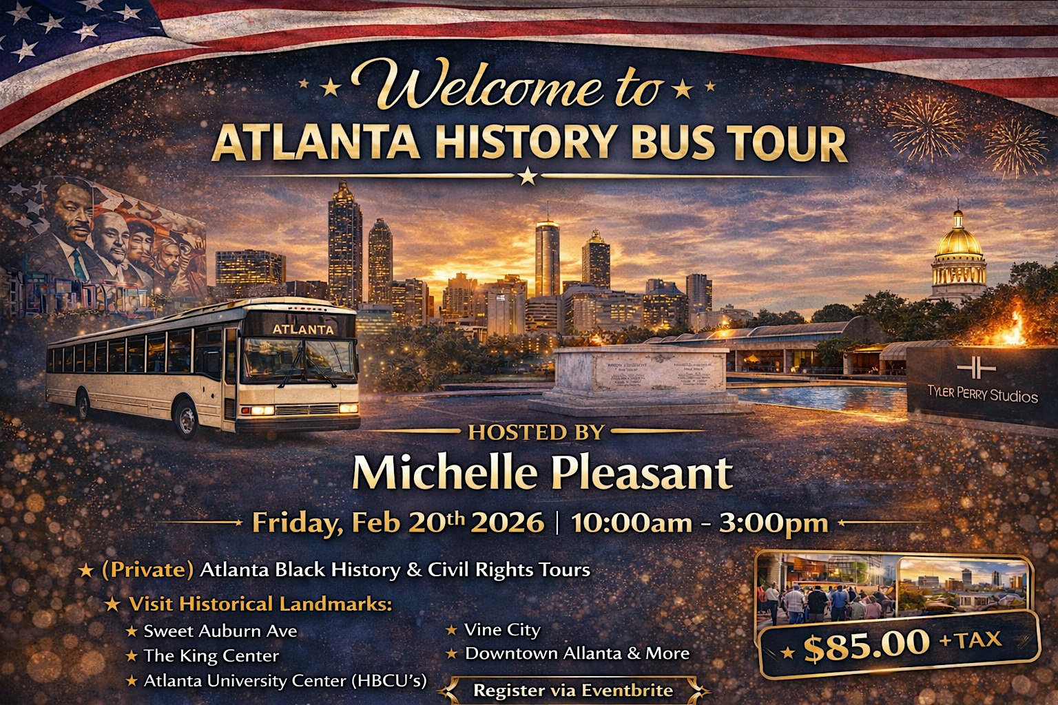 by admin13Feb Welcome To Atlanta Black History Bus Tour at Signia by Hilton Atlanta Georgia World Congress Center – Atlanta, GA Welcome To Atlanta Black History Bus Tour at Signia by Hilton Atlanta Georgia World Congress Center – Atlanta, GA 2 2 people viewed this event. Explore Atlanta’s rich Black history up close with stories, sights, and vibes you’ll never forget! Tickets-RSVP Link Date And Time Friday, February 20th, 2026 03:00 PM (PST) Venue Signia by Hilton Atlanta Georgia World Congress Center Location 159 Northside Drive Northwest, Atlanta, GA 30313 Event Types Community & Culture Event Category AtlantaGeorgia Share With Friends Facebook Twitter Linkedin Xing Pinterest Share This Post: