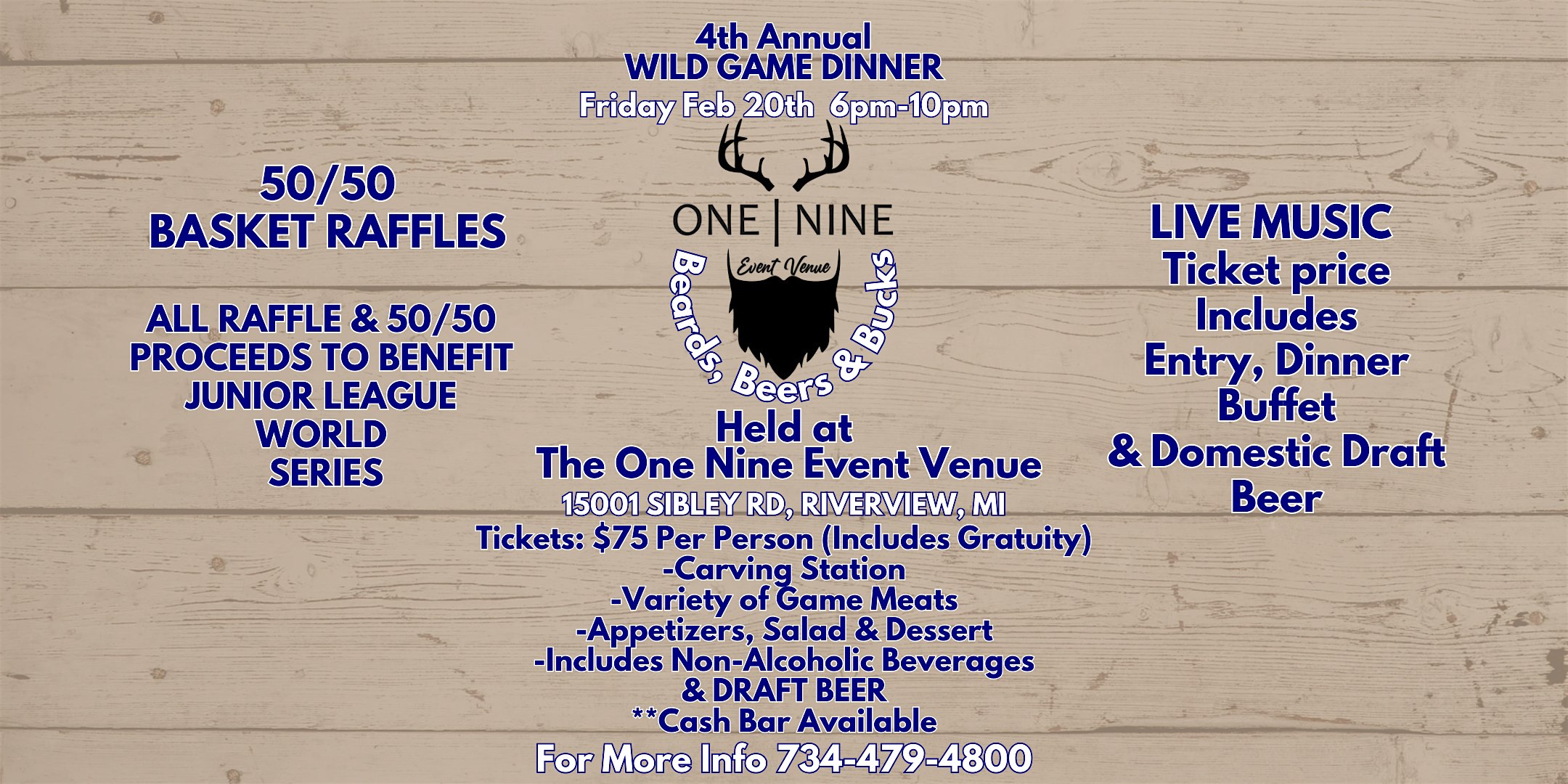 by admin12Feb Wild Game Dinner 2026 at One Nine Event Venue – Riverview, MI Wild Game Dinner 2026 at One Nine Event Venue – Riverview, MI 5 5 people viewed this event. Get ready for a feast of epic proportions at our Wild Game Dinner, featuring delicious dishes straight from the great outdoors! Tickets-RSVP Link Date And Time Friday, February 20th, 2026 11:00 PM (PST) Venue One Nine Event Venue Location 15001 Sibley Road, Riverview, MI 48193 Event Types Food & Drink Event Category Michigan Share With Friends Facebook Twitter Linkedin Xing Pinterest Share This Post:
