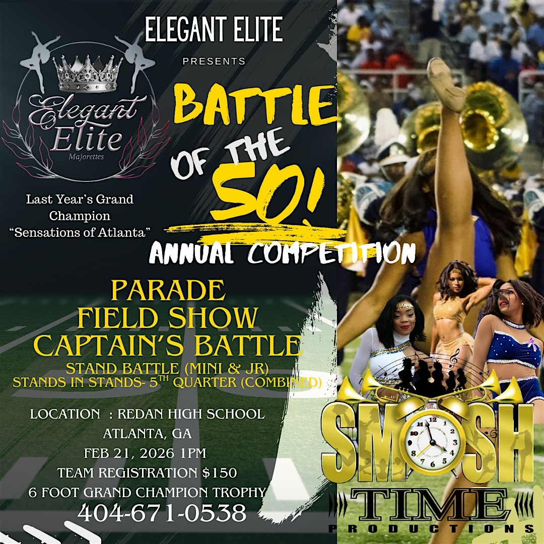 by admin13Feb 2026 Annual Battle of the 50 Dance Competition at Redan High School – Stone Mountain, GA 2026 Annual Battle of the 50 Dance Competition at Redan High School – Stone Mountain, GA 3 3 people viewed this event. Get ready to dance your heart out at the 2026 Annual Battle of the 50 Dance Competition live and in person! Tickets-RSVP Link Date And Time Saturday, February 21st, 2026 06:00 PM (PST) Venue Redan High School Location 5247 Redan Road, Stone Mountain, GA 30088 Event Types Performing & Visual Arts Event Category Georgia Share With Friends Facebook Twitter Linkedin Xing Pinterest Share This Post: