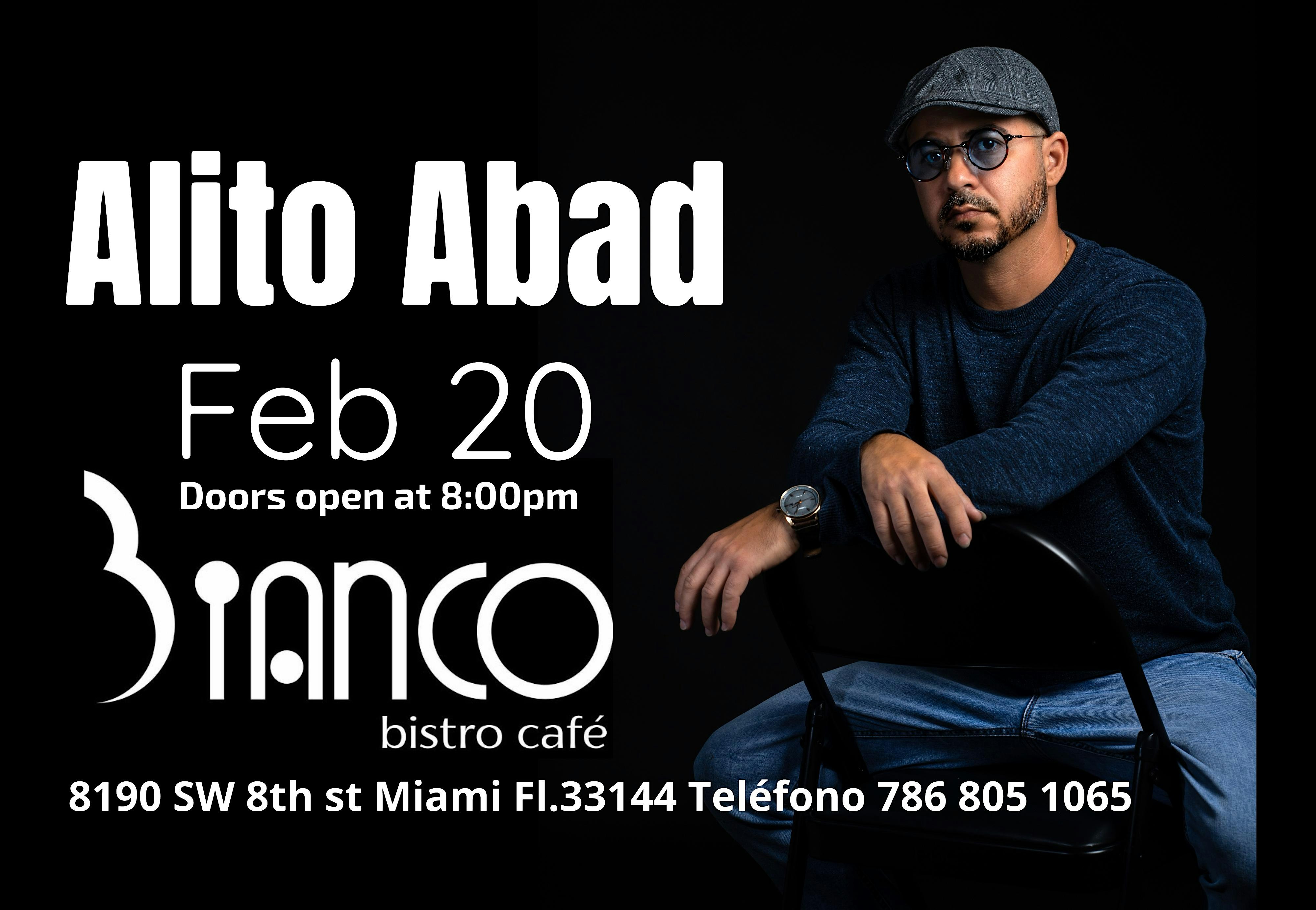 by admin13Feb Alito Abad Concert at Bianco Bistro Cafe – Miami, FL Alito Abad Concert at Bianco Bistro Cafe – Miami, FL 4 4 people viewed this event. Una noche diferente con uno de los mejores cantautores de Cuba. Déjate encantar por la magia de las canciones de Alito Abad. Compra ya Tickets-RSVP Link Date And Time Saturday, February 21st, 2026 01:00 AM (PST) Venue Bianco Bistro Cafe Location 8190 Southwest 8th Street, Miami, FL 33144 Event Types Concert or PerformanceMusic Event Category FloridaMiami Share With Friends Facebook Twitter Linkedin Xing Pinterest Share This Post: