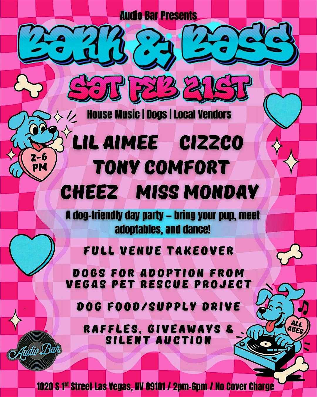 by admin13Feb Bark and Bass at Audio Bar – Las Vegas, NV Bark and Bass at Audio Bar – Las Vegas, NV 2 2 people viewed this event. A dog-friendly day party – Bring your pup, meet adoptable, support local vendors, and dance! Tickets-RSVP Link Date And Time Saturday, February 21st, 2026 10:00 PM (PST) Venue Audio Bar Location 1020 South 1st Street, Las Vegas, NV 89101 Event Types Concert or PerformanceMusic Event Category Las VegasNevada Share With Friends Facebook Twitter Linkedin Xing Pinterest Share This Post: