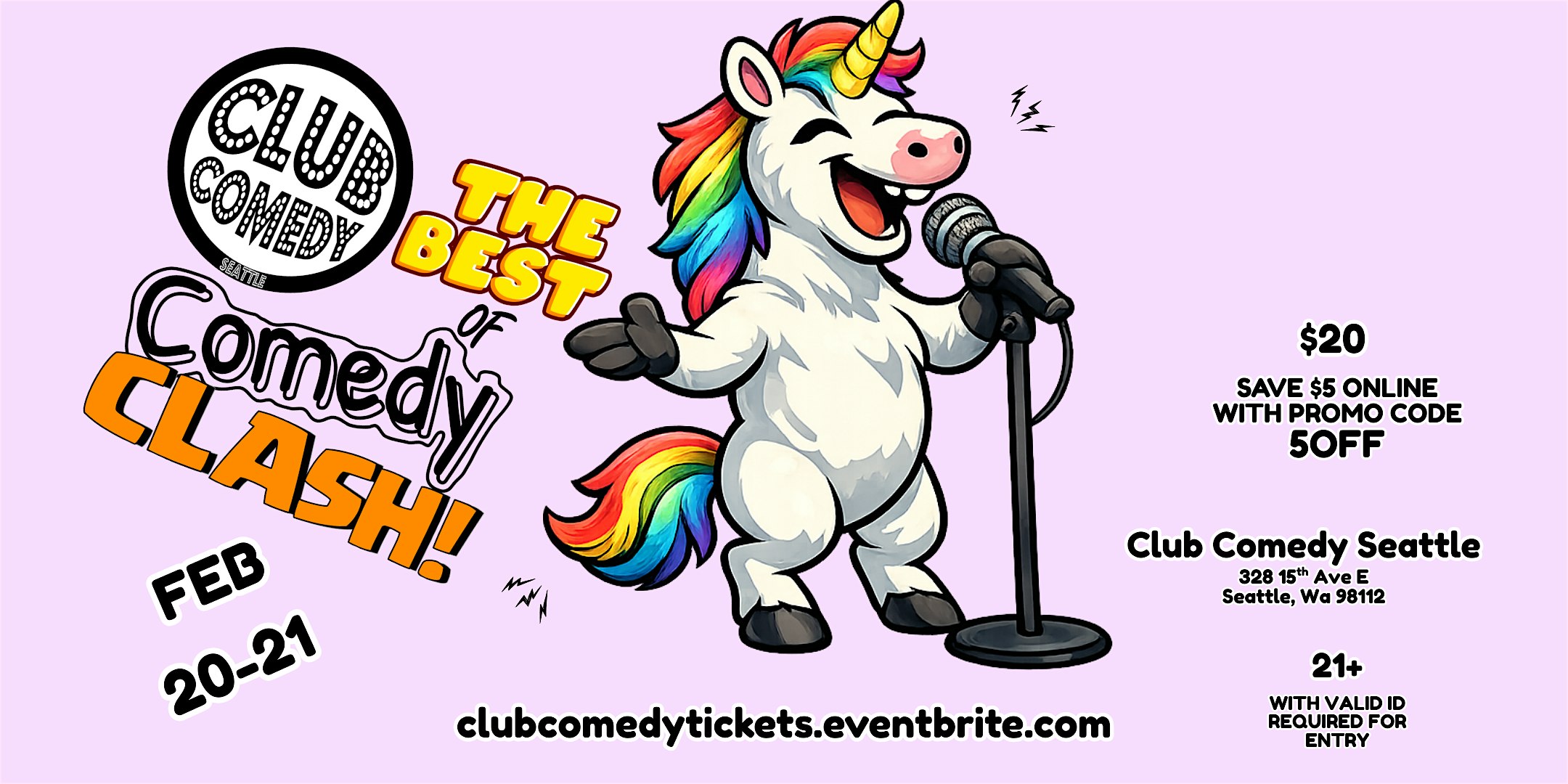 by admin12Feb Best of Comedy Clash at Club Comedy Seattle February 20-21 at Club Comedy Seattle – Seattle, WA Best of Comedy Clash at Club Comedy Seattle February 20-21 at Club Comedy Seattle – Seattle, WA 1 1 people viewed this event. Best of Comedy Clash at Club Comedy Seattle February 20-21 Door at 7:00PM. Show at 7:30PM. Tickets-RSVP Link Date And Time Saturday, February 21st, 2026 03:00 AM (PST) Venue Club Comedy Seattle Location 328 15th Ave E, Seattle, WA 98112 Event Types Concert or PerformancePerforming & Visual Arts Event Category SeattleWashington Share With Friends Facebook Twitter Linkedin Xing Pinterest Share This Post: