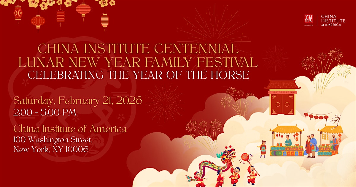 by admin12Feb China Institute Centennial Lunar New Year Family Festival at China Institute of America – New York, NY China Institute Centennial Lunar New Year Family Festival at China Institute of America – New York, NY 1 1 people viewed this event. China Institute Centennial Lunar New Year Family Festival – Celebrating the Year of the Horse Tickets-RSVP Link Date And Time Saturday, February 21st, 2026 07:00 PM (PST) Venue China Institute of America Location 100 Washington Street, New York, NY 10006 Event Types Community & CultureFestival or Fair Event Category New YorkNew York City Share With Friends Facebook Twitter Linkedin Xing Pinterest Share This Post: