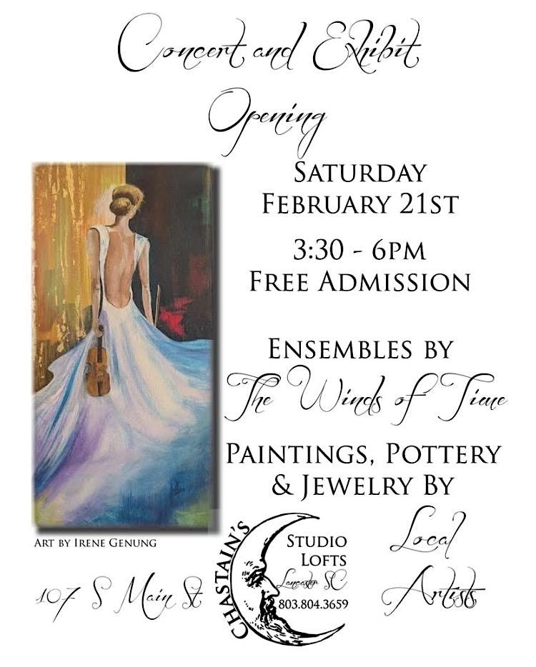 by admin12Feb Concert and Exhit Opening at Chastain’s Studio Lofts at Chastain’s Studio Lofts – Lancaster, SC Concert and Exhit Opening at Chastain’s Studio Lofts at Chastain’s Studio Lofts – Lancaster, SC 2 2 people viewed this event. Join us for a fun night of live tunes and art vibes at Chastain’s Studio Lofts – don’t miss out! Tickets-RSVP Link Date And Time Saturday, February 21st, 2026 11:00 PM (PST) Venue Chastain's Studio Lofts Location 107 S. Main St, Lancaster, SC 29720 Event Types Concert or PerformancePerforming & Visual Arts Event Category South Carolina Share With Friends Facebook Twitter Linkedin Xing Pinterest Share This Post: