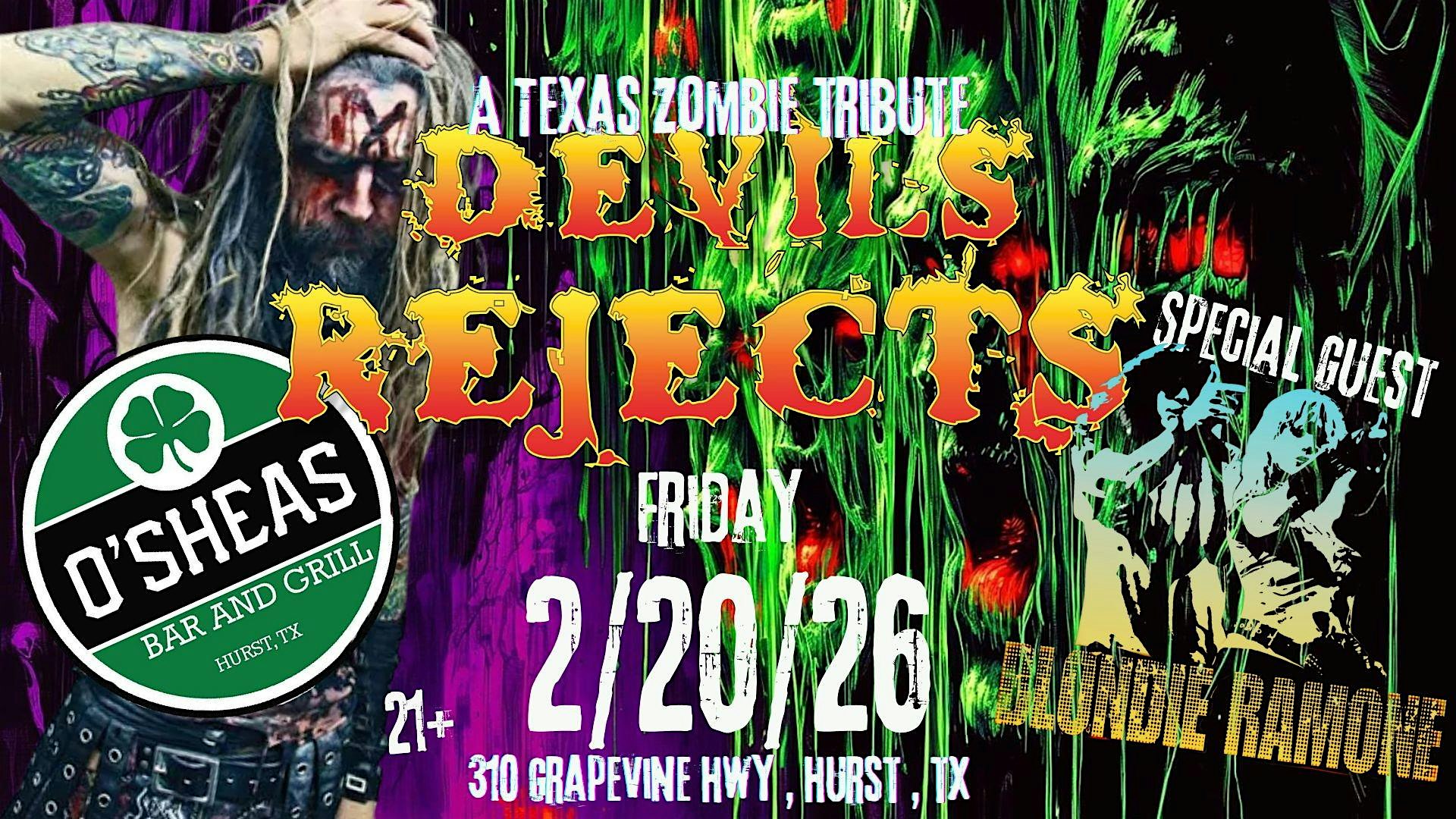 by admin12Feb Devil’s Rejects – A Texas Zombie Tribute at O’Sheas Irish Pub – Hurst, TX Devil’s Rejects – A Texas Zombie Tribute at O’Sheas Irish Pub – Hurst, TX 4 4 people viewed this event. A Texas Zombie Tribute Tickets-RSVP Link Date And Time Saturday, February 21st, 2026 03:00 AM (PST) Venue O'Sheas Irish Pub Location 310 Grapevine Highway, Hurst, TX 76054 Event Types Concert or PerformanceMusic Event Category Texas Share With Friends Facebook Twitter Linkedin Xing Pinterest Share This Post: