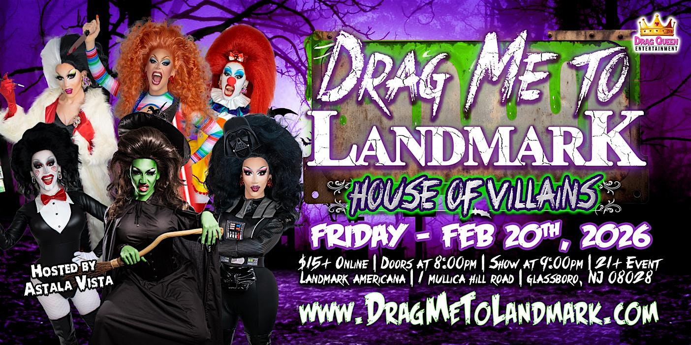 by admin12Feb Drag Me To Landmark – House of Villains at Landmark Americana-Glassboro – Glassboro, NJ Drag Me To Landmark – House of Villains at Landmark Americana-Glassboro – Glassboro, NJ 2 2 people viewed this event. On Friday, February 20th, Join us for a fiercely wicked “House of Villains” Drag Show at Landmark in Glassboro, NJ! Tickets-RSVP Link Date And Time Saturday, February 21st, 2026 02:00 AM (PST) Venue Landmark Americana-Glassboro Location 1 Mullica Hill Road, Glassboro, NJ 8028 Event Types Concert or PerformancePerforming & Visual Arts Event Category New Jersey Share With Friends Facebook Twitter Linkedin Xing Pinterest Share This Post: