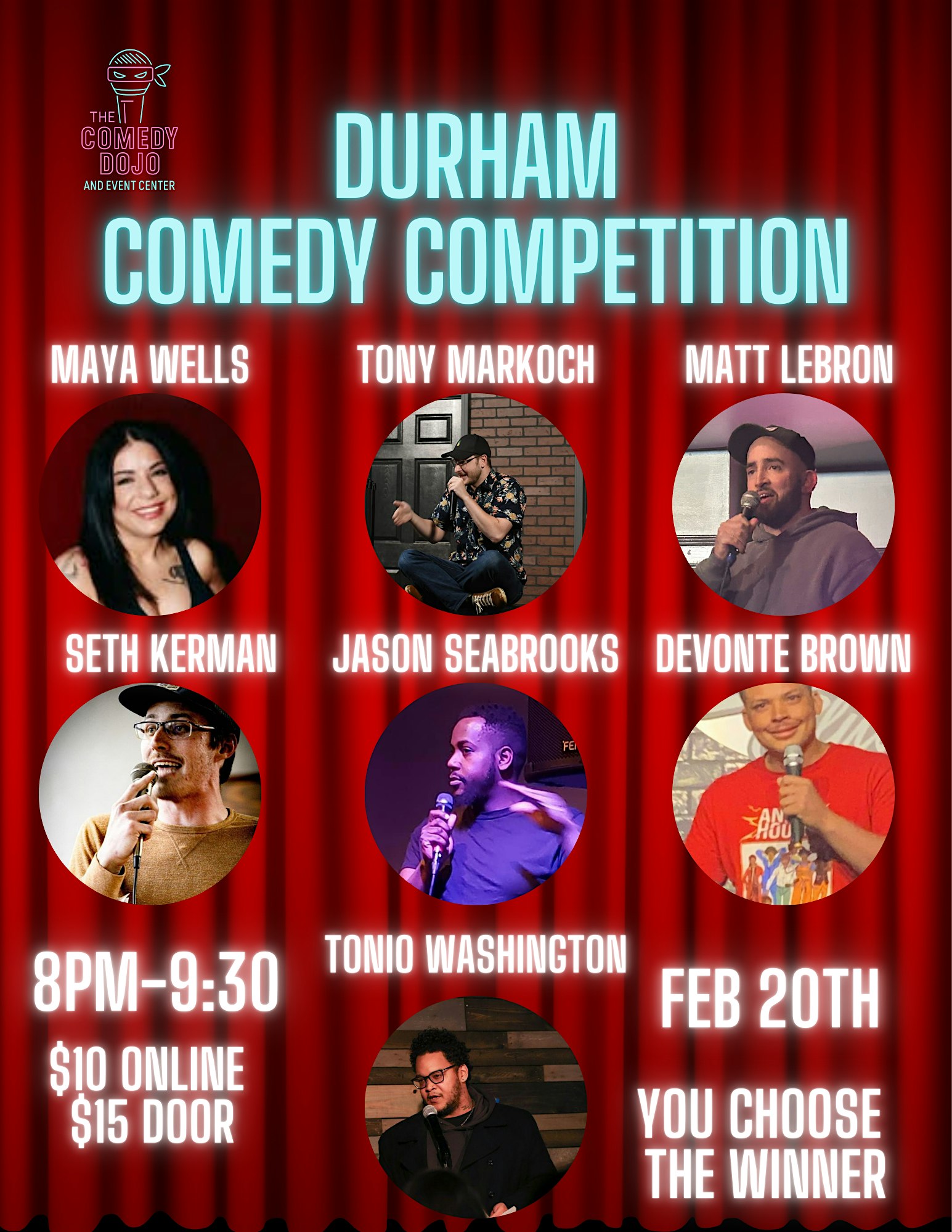 by admin12Feb Durham Comedy Competition at 103 W Main St – Durham, NC Durham Comedy Competition at 103 W Main St – Durham, NC 1 1 people viewed this event. 7 comics compete for $100 Tickets-RSVP Link Date And Time Saturday, February 21st, 2026 01:00 AM (PST) Venue 103 W Main St Location 103 West Main Street, Durham, NC 27701 Event Types Performing & Visual Arts Event Category DurhamNorth Carolina Share With Friends Facebook Twitter Linkedin Xing Pinterest Share This Post: