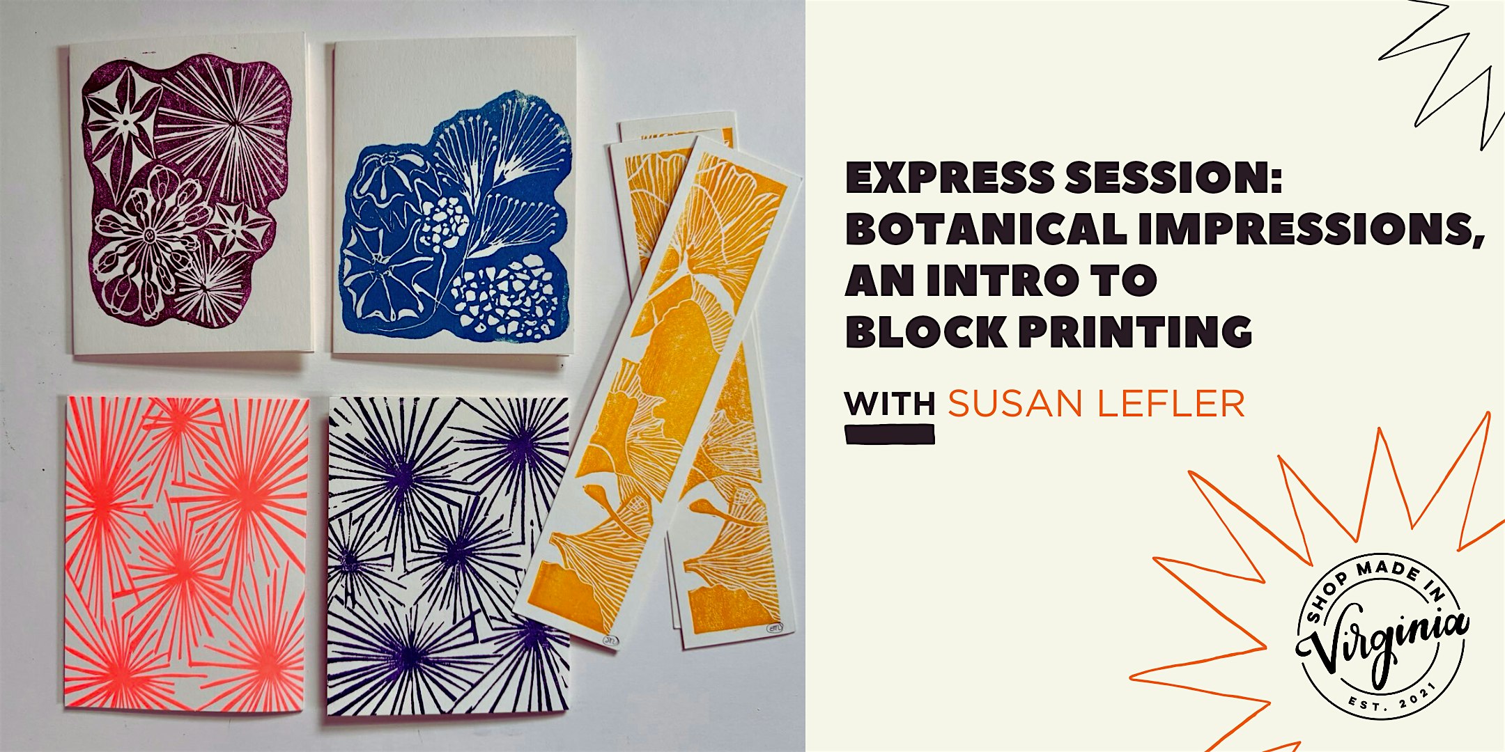 Express Session! Botanical Impressions: Block Printing Intro w/Susan Lefler at Shop Made in VA – Old Town Alexandria – Alexandria, VA