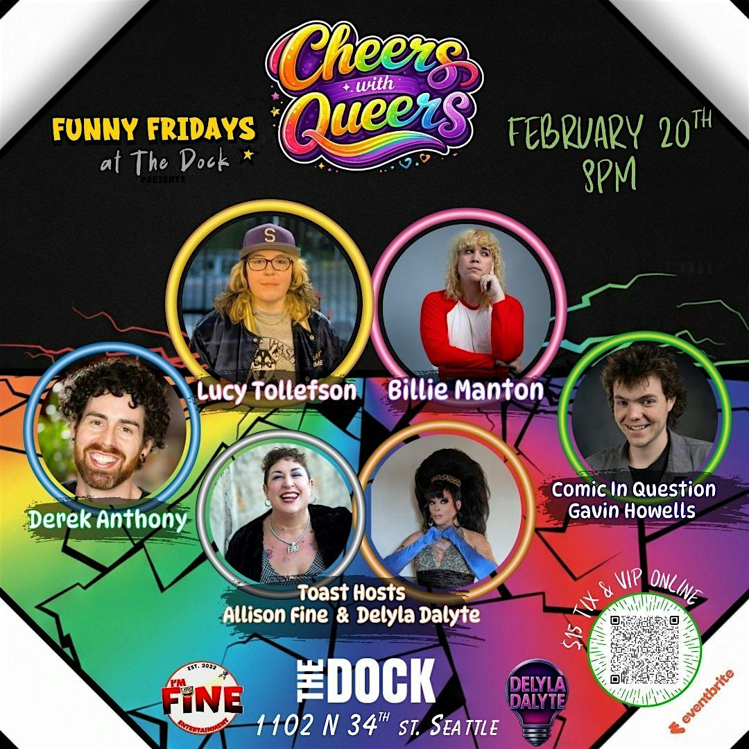 by admin12Feb Funny Fridays at the Dock : Cheers w/Queers at The Dock Sports Bar & Grill – Seattle, WA Funny Fridays at the Dock : Cheers w/Queers at The Dock Sports Bar & Grill – Seattle, WA 1 1 people viewed this event. Raise a glass at “Cheers with Queers,” a hilarious night of LGBTQ+ stand-up, drag and unapologetic joy. Grab a shot and a laugh!! Tickets-RSVP Link Date And Time Saturday, February 21st, 2026 04:00 AM (PST) Venue The Dock Sports Bar & Grill Location 1102 North 34th Street, Seattle, WA 98103 Event Types Concert or PerformancePerforming & Visual Arts Event Category SeattleWashington Share With Friends Facebook Twitter Linkedin Xing Pinterest Share This Post: