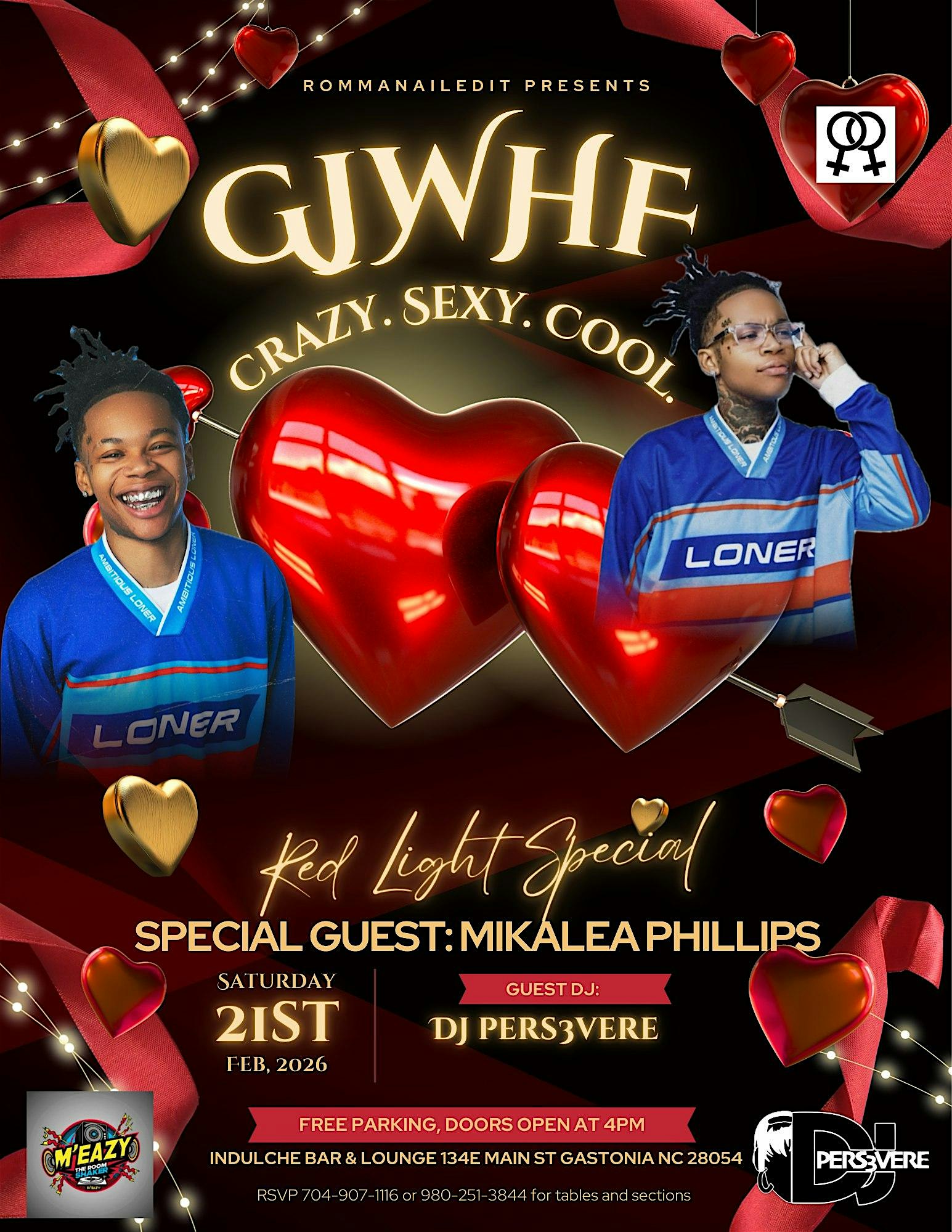 by admin13Feb GJWHF Red Light Special at 134 E Main Ave – Gastonia, NC GJWHF Red Light Special at 134 E Main Ave – Gastonia, NC 2 2 people viewed this event. Get ready for a sultry day vibe filled with surprises and special guest MIKALEA PHILLIPS at the GJWHF Red Light Special event! Tickets-RSVP Link Date And Time Saturday, February 21st, 2026 09:00 PM (PST) Venue 134 E Main Ave Location 134 East Main Avenue, Gastonia, NC 28052 Event Types MusicParty or Social Gathering Event Category CharlotteNorth Carolina Share With Friends Facebook Twitter Linkedin Xing Pinterest Share This Post:
