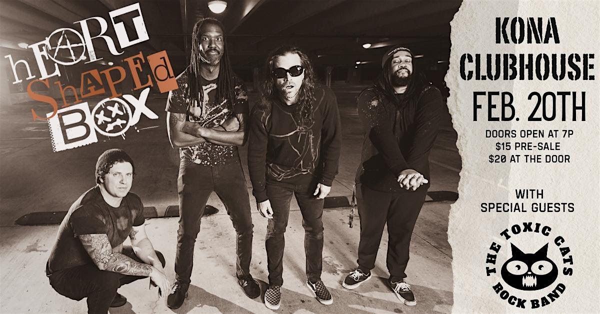 by admin13Feb Heart Shaped Box w/Toxic Cats at Kona Skate Park – Jacksonville, FL Heart Shaped Box w/Toxic Cats at Kona Skate Park – Jacksonville, FL 3 3 people viewed this event. Dive into Nirvana with Heart Shaped Box, an in-person thrill you won’t forget! Tickets-RSVP Link Date And Time Saturday, February 21st, 2026 01:00 AM (PST) Venue Kona Skate Park Location 8739 Kona Avenue, Jacksonville, FL 32211 Event Types Concert or PerformanceMusic Event Category FloridaJacksonville Share With Friends Facebook Twitter Linkedin Xing Pinterest Share This Post: