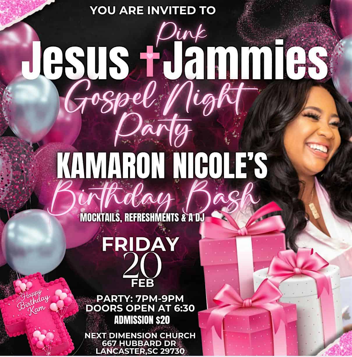 by admin14Feb Jesus & PINK Jammies at 667 Hubbard Dr – Lancaster, SC Jesus & PINK Jammies at 667 Hubbard Dr – Lancaster, SC 1 1 people viewed this event. Jesus & Pink Jammies Celebrating Kamaron Nicole with mocktails, DJ, karaoke, fun games & a big gospel party. Cozy vibes, loud praise! Tickets-RSVP Link Date And Time Saturday, February 21st, 2026 12:00 AM (PST) Venue 667 Hubbard Dr Location 667 Hubbard Drive, Lancaster, SC 29720 Event Types Concert or Performance Event Category South Carolina Share With Friends Facebook Twitter Linkedin Xing Pinterest Share This Post: