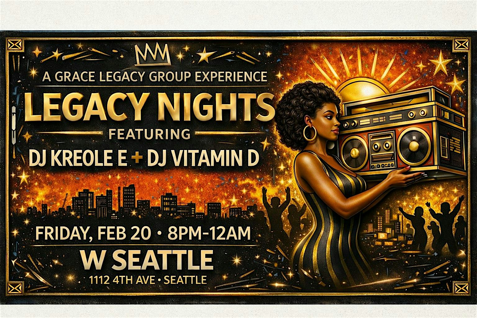 by admin12Feb LEGACY NIGHTS x W SEATTLE VOL. 2 at W Seattle – Seattle, WA LEGACY NIGHTS x W SEATTLE VOL. 2 at W Seattle – Seattle, WA 7 7 people viewed this event. Legacy Nights takes over W Seattle! A night for the culture, and the ones who know how to enjoy the room. Soul · Afrobeats · R&B · Hip-Hop. Tickets-RSVP Link Date And Time Saturday, February 21st, 2026 04:00 AM (PST) Venue W Seattle Location 1112 4th Avenue, Seattle, WA 98101 Event Types MusicParty or Social Gathering Event Category SeattleWashington Share With Friends Facebook Twitter Linkedin Xing Pinterest Share This Post:
