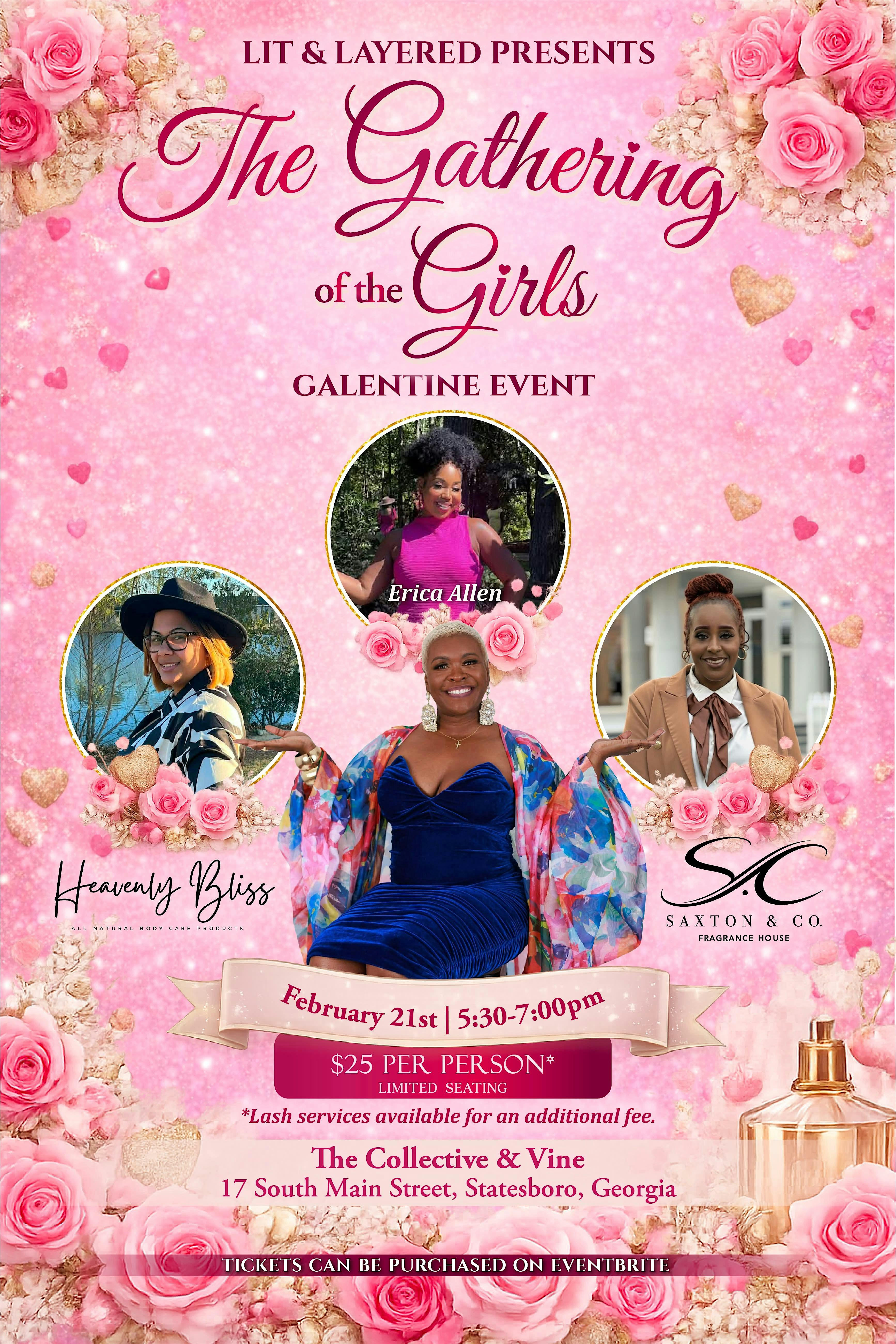 by admin13Feb Lit & Layered: The Gathering of the Girls Galentine Experience at The Collective and Vine – Stat, GA Lit & Layered: The Gathering of the Girls Galentine Experience at The Collective and Vine – Stat, GA 3 3 people viewed this event. The Gathering of the Girls by Lit & Layered Create • Shop • Glow Body Oils | Fragrance Oils | Glam your brows Tickets-RSVP Link Date And Time Saturday, February 21st, 2026 10:00 PM (PST) Venue The Collective and Vine Location 17 South Main Street, Stat, GA 30458 Event Types Community & CultureParty or Social Gathering Event Category Georgia Share With Friends Facebook Twitter Linkedin Xing Pinterest Share This Post: