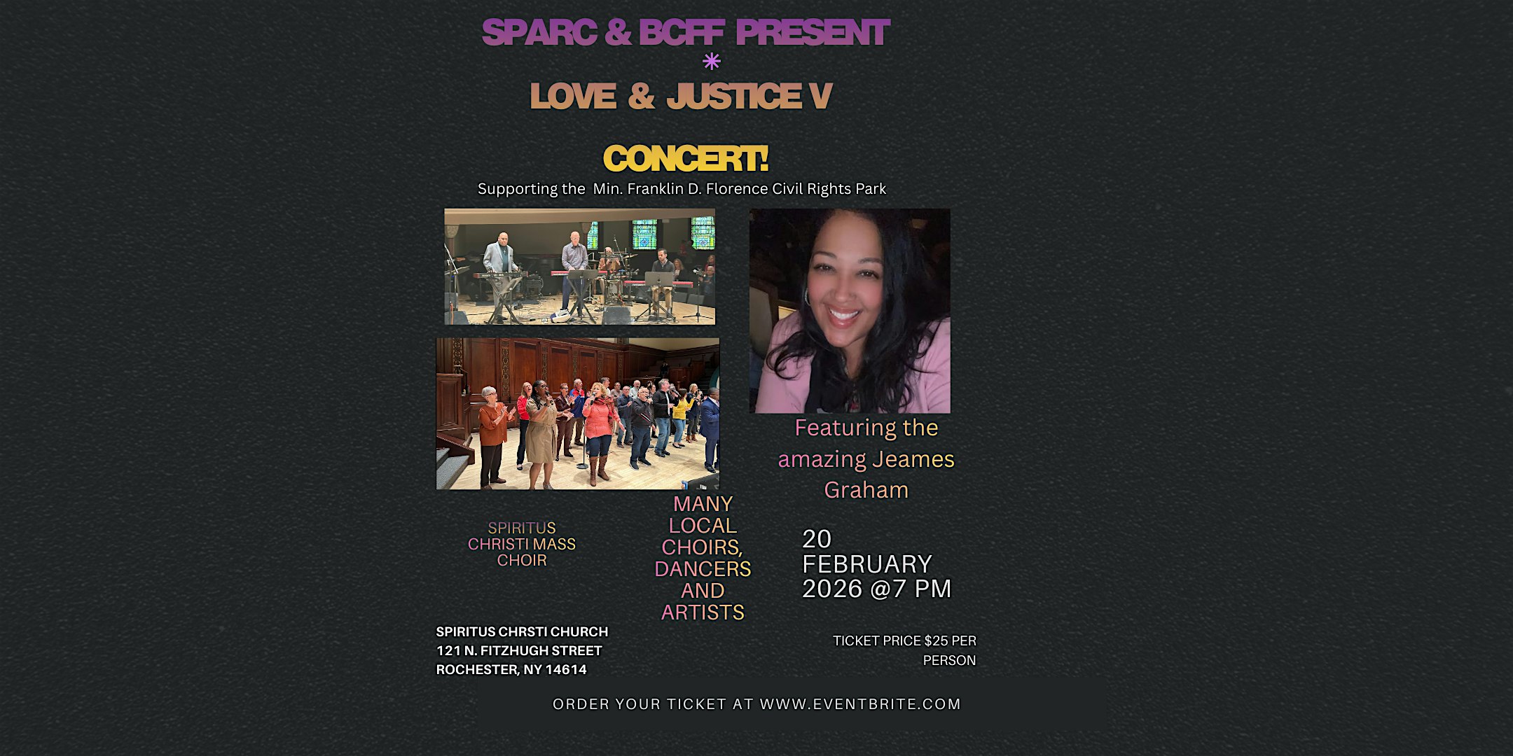 by admin13Feb Love & Justice V at Spiritus Christi – Rochester, NY Love & Justice V at Spiritus Christi – Rochester, NY 2 2 people viewed this event. Join us for Love & Justice V—where hearts unite and change takes flight! Tickets-RSVP Link Date And Time Saturday, February 21st, 2026 12:00 AM (PST) Venue Spiritus Christi Location 121 Fitzhugh Street North, Rochester, NY 14614 Event Types Charity & CausesConcert or Performance Event Category New York Share With Friends Facebook Twitter Linkedin Xing Pinterest Share This Post: