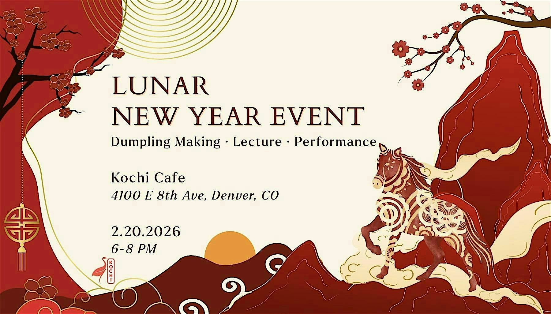 by admin12Feb Lunar New Year – Cultural Event at 4100 E 8th Ave – Denver, CO Lunar New Year – Cultural Event at 4100 E 8th Ave – Denver, CO 3 3 people viewed this event. Make dumplings, learn Lunar New Year traditions, and experience a rare Han Dynasty dance! Tickets-RSVP Link Date And Time Saturday, February 21st, 2026 01:00 AM (PST) Venue 4100 E 8th Ave Location 4100 East 8th Avenue, Denver, CO 80220 Event Types Community & CultureFestival or Fair Event Category ColoradoDenver Share With Friends Facebook Twitter Linkedin Xing Pinterest Share This Post: