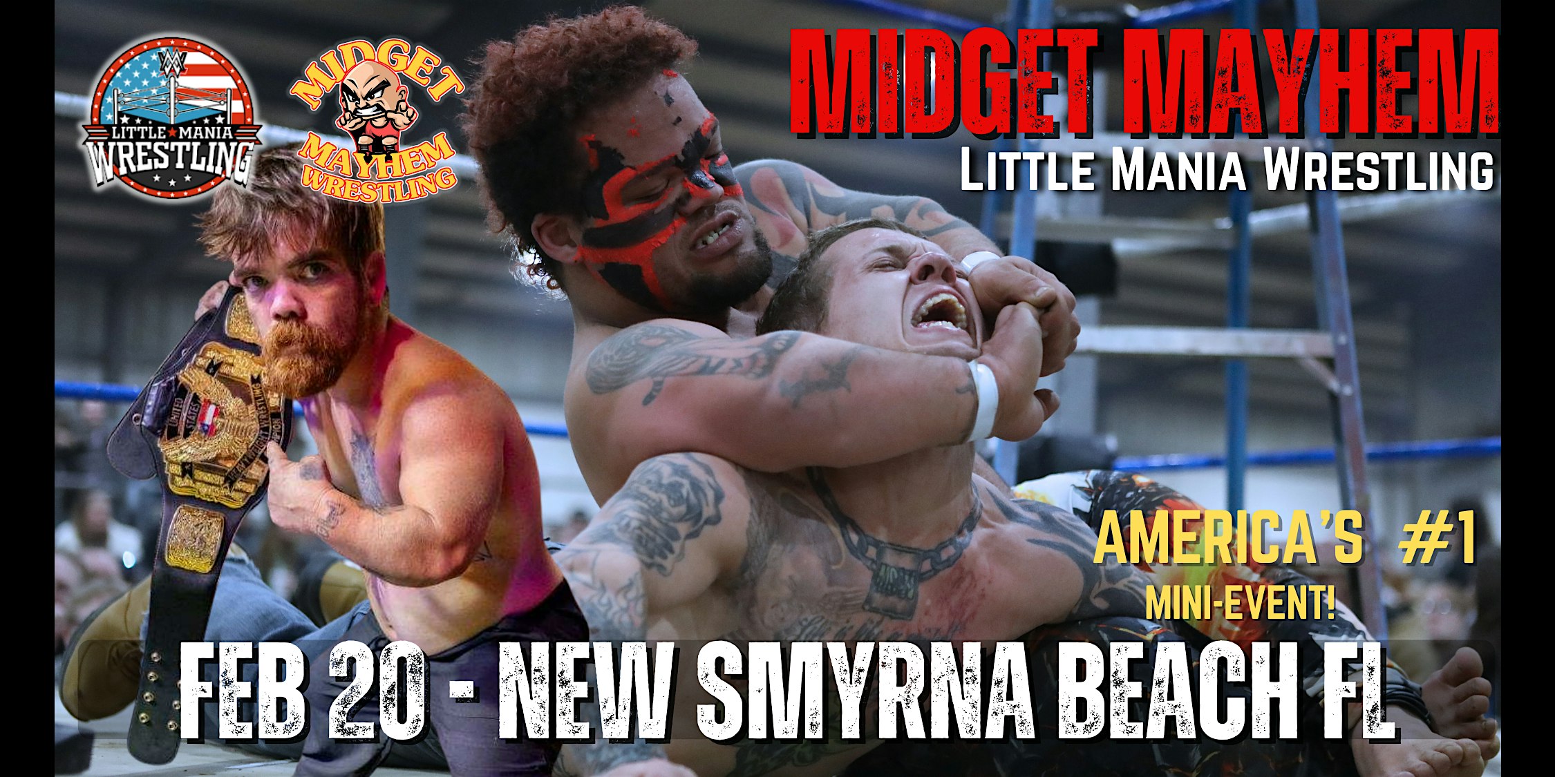 by admin12Feb New Smyrna Beach FL- “Midget Mayhem/Little Mania” Mini Wrestling! All-Ages at New Smyrna Speedway – New Smyrna Beach, FL New Smyrna Beach FL- “Midget Mayhem/Little Mania” Mini Wrestling! All-Ages at New Smyrna Speedway – New Smyrna Beach, FL 5 5 people viewed this event. MIDGET / DWARF WRESTLING & BRAWLING! SEE MINI PUNCHES, KICKS, AND PUNCHES LIVE IN NEW SMYRNA BEACH, FLORIDA! Tickets-RSVP Link Date And Time Saturday, February 21st, 2026 12:00 AM (PST) Venue New Smyrna Speedway Location 3939 Florida 44, New Smyrna Beach, FL 32168 Event Types Concert or PerformancePerforming & Visual Arts Event Category Daytona BeachFlorida Share With Friends Facebook Twitter Linkedin Xing Pinterest Share This Post: