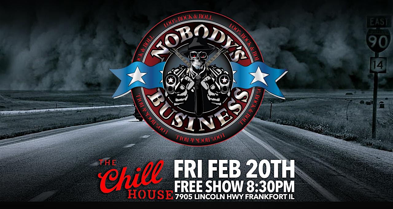 by admin13Feb Nobody’s Business at The Chill House at 7905 W Lincoln Hwy – Frankfort, IL Nobody’s Business at The Chill House at 7905 W Lincoln Hwy – Frankfort, IL 3 3 people viewed this event. Get ready to rock out live with Nobody’s Business at The Chill House—good vibes and great tunes guaranteed! Tickets-RSVP Link Date And Time Saturday, February 21st, 2026 02:00 AM (PST) Venue 7905 W Lincoln Hwy Location 7905 West Lincoln Highway, Frankfort, IL 60423 Event Types Concert or PerformanceMusic Event Category Illinois Share With Friends Facebook Twitter Linkedin Xing Pinterest Share This Post: