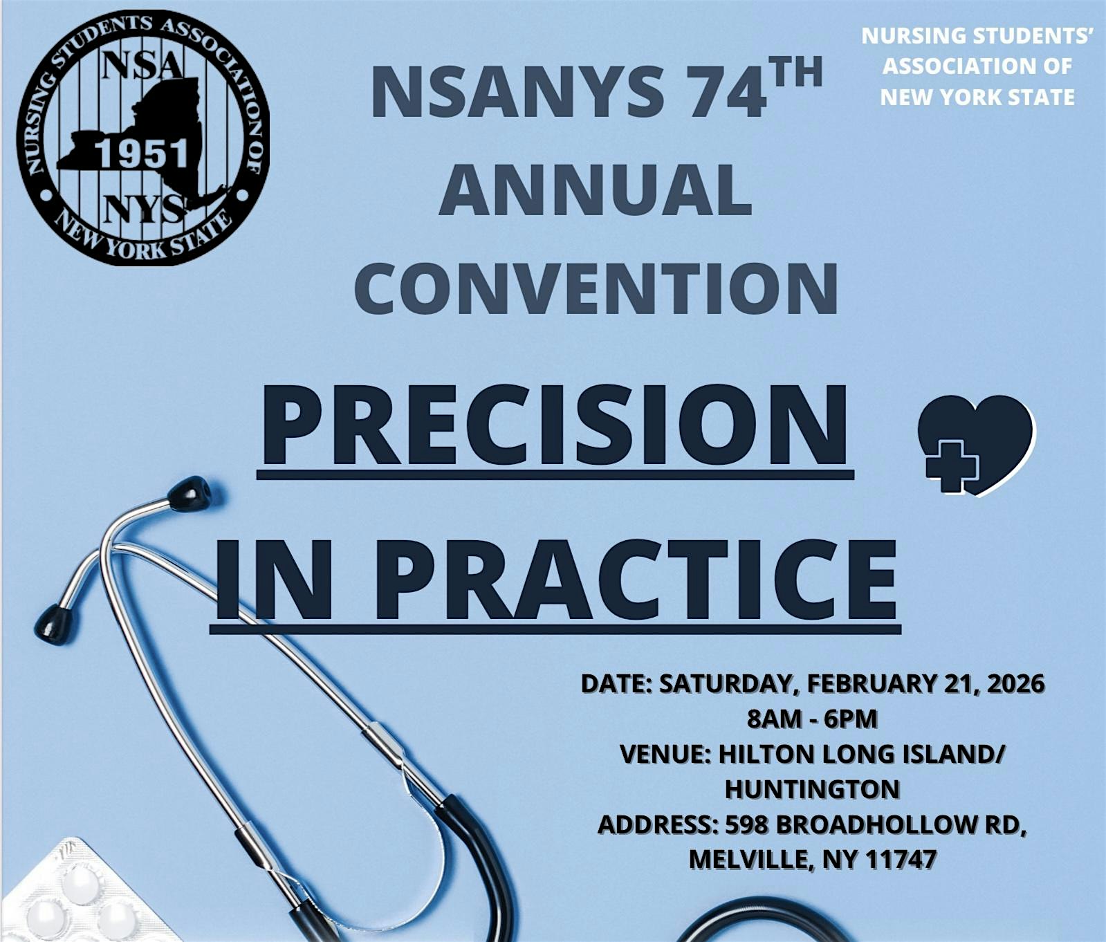 by admin12Feb NSANYS 74th Annual Convention: Precision In Practice at Hilton Long Island/Huntington – Melville, NY NSANYS 74th Annual Convention: Precision In Practice at Hilton Long Island/Huntington – Melville, NY 3 3 people viewed this event. Join NSANYS for an insightful convention on nursing school and the future of nursing while learning about precise documentation. Tickets-RSVP Link Date And Time Saturday, February 21st, 2026 01:00 PM (PST) Venue Hilton Long Island/Huntington Location 598 Broadhollow Road, Melville, NY 11747 Event Category New York Share With Friends Facebook Twitter Linkedin Xing Pinterest Share This Post: