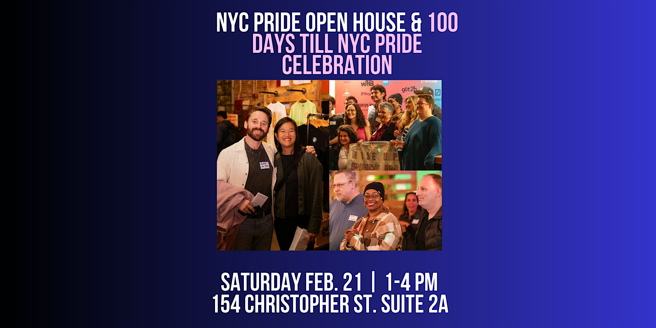 by admin12Feb NYC Pride Open House & 100 Days till NYC Pride Celebration at 154 Christopher St suite 2a – New York, NY NYC Pride Open House & 100 Days till NYC Pride Celebration at 154 Christopher St suite 2a – New York, NY 3 3 people viewed this event. NYC Pride Open Houses are spaces for the LGBTQIA+ community to feel safe, valued, and supported in being their authentic selves. Tickets-RSVP Link Date And Time Saturday, February 21st, 2026 06:00 PM (PST) Venue 154 Christopher St suite 2a Location 154 Christopher Street, New York, NY 10014 Event Types Community & CultureParty or Social Gathering Event Category New YorkNew York City Share With Friends Facebook Twitter Linkedin Xing Pinterest Share This Post: