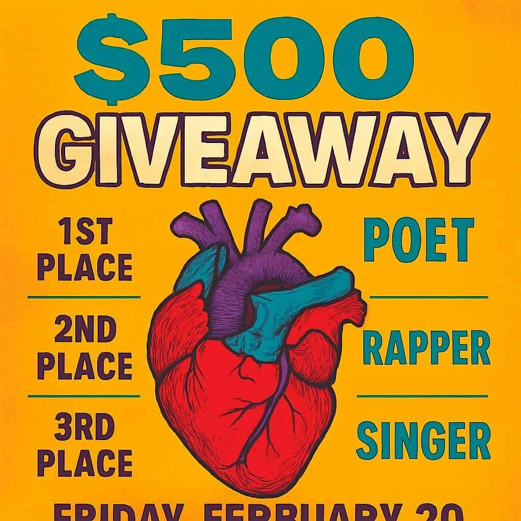 by admin14Feb Open Mic: The Poetry Lounge Artist Giveaway at Parliament Event Venue – Oakland, CA Open Mic: The Poetry Lounge Artist Giveaway at Parliament Event Venue – Oakland, CA 2 2 people viewed this event. Experience an enchanting evening of thought provoking lines, provided by poets, singers, rappers, & storytellers ready to win up to $500! Tickets-RSVP Link Date And Time Saturday, February 21st, 2026 02:00 AM (PST) Venue Parliament Event Venue Location 811 Washington Street, Oakland, CA 94607 Event Types Concert or PerformancePerforming & Visual Arts Event Category CaliforniaOakland Share With Friends Facebook Twitter Linkedin Xing Pinterest Share This Post: