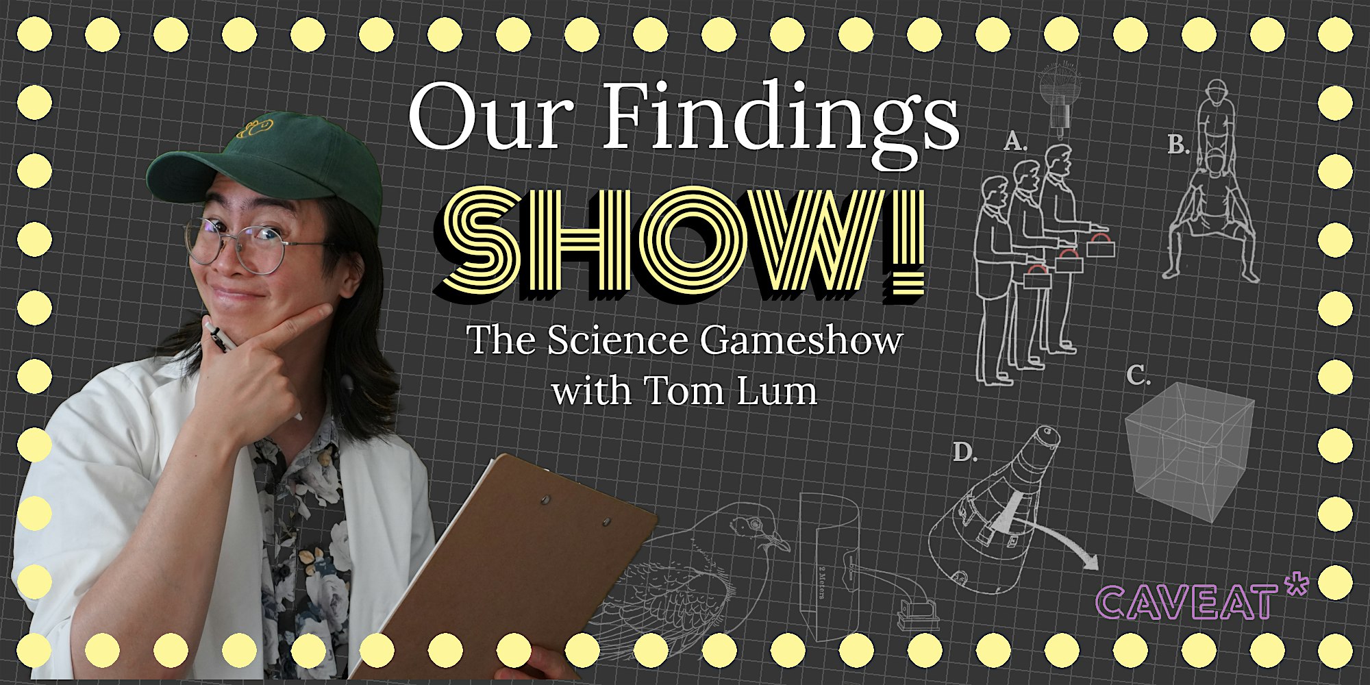 by admin13Feb Our Findings Show at Caveat – New York, NY Our Findings Show at Caveat – New York, NY 2 2 people viewed this event. The science game show that’s academically rigorous and comically ridiculous. Tickets-RSVP Link Date And Time Saturday, February 21st, 2026 12:00 AM (PST) Venue Caveat Location 21 A Clinton Street, New York, NY 10002 Event Types Performing & Visual Arts Event Category New YorkNew York City Share With Friends Facebook Twitter Linkedin Xing Pinterest Share This Post: