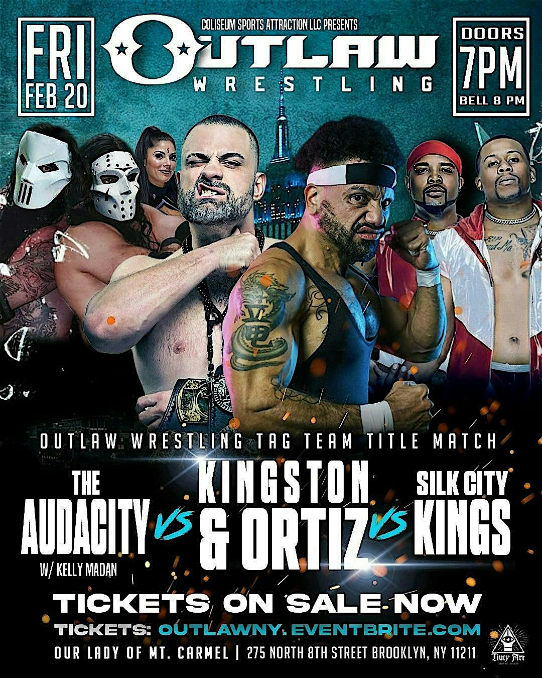 by admin12Feb Outlaw Wrestling in Williamsburg! at Shrine Church of Our Lady of Mount Carmel – Brooklyn, NY Outlaw Wrestling in Williamsburg! at Shrine Church of Our Lady of Mount Carmel – Brooklyn, NY 2 2 people viewed this event. Outlaw Wrestling returns to Williamsburg with Eddie Kingston & Ortiz! Tickets-RSVP Link Date And Time Saturday, February 21st, 2026 01:00 AM (PST) Venue Shrine Church of Our Lady of Mount Carmel Location 275 North 8th Street, Brooklyn, NY 11211 Event Types Party or Social GatheringSports & Fitness Event Category New York Share With Friends Facebook Twitter Linkedin Xing Pinterest Share This Post:
