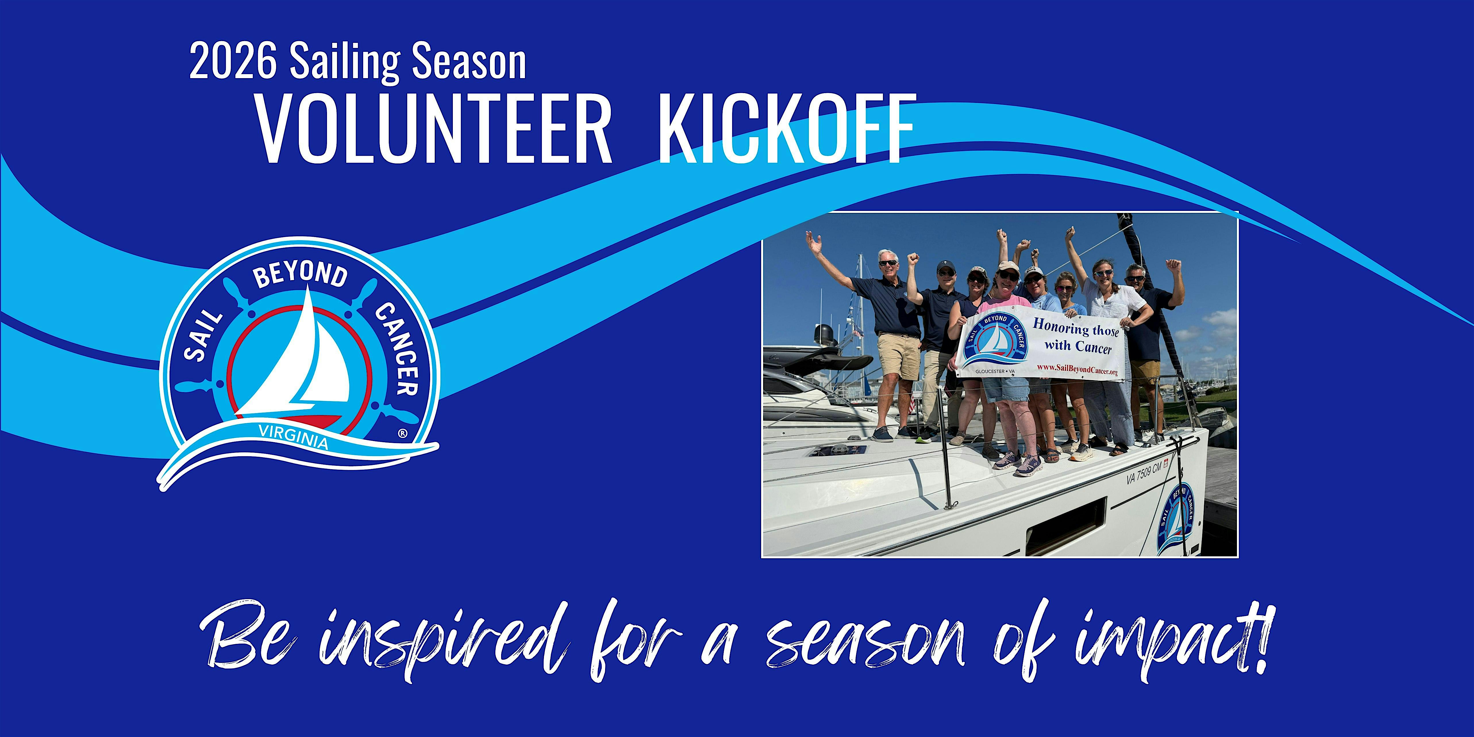 by admin13Feb Sail Beyond Cancer® Virginia Volunteer Kickoff at Mounts Bay Recreation Center and Pool at Kingsmill – Williamsburg, VA Sail Beyond Cancer® Virginia Volunteer Kickoff at Mounts Bay Recreation Center and Pool at Kingsmill – Williamsburg, VA 2 2 people viewed this event. Sail Beyond Cancer® Virginia’s 2026 Sailing Season is just around the corner… join us and be inspired for a season of impact! Tickets-RSVP Link Date And Time Saturday, February 21st, 2026 04:00 PM (PST) Venue Mounts Bay Recreation Center and Pool at Kingsmill Location 101 Tutters Neck, Williamsburg, VA 23185 Event Types Charity & CausesParty or Social Gathering Event Category Virginia Share With Friends Facebook Twitter Linkedin Xing Pinterest Share This Post: