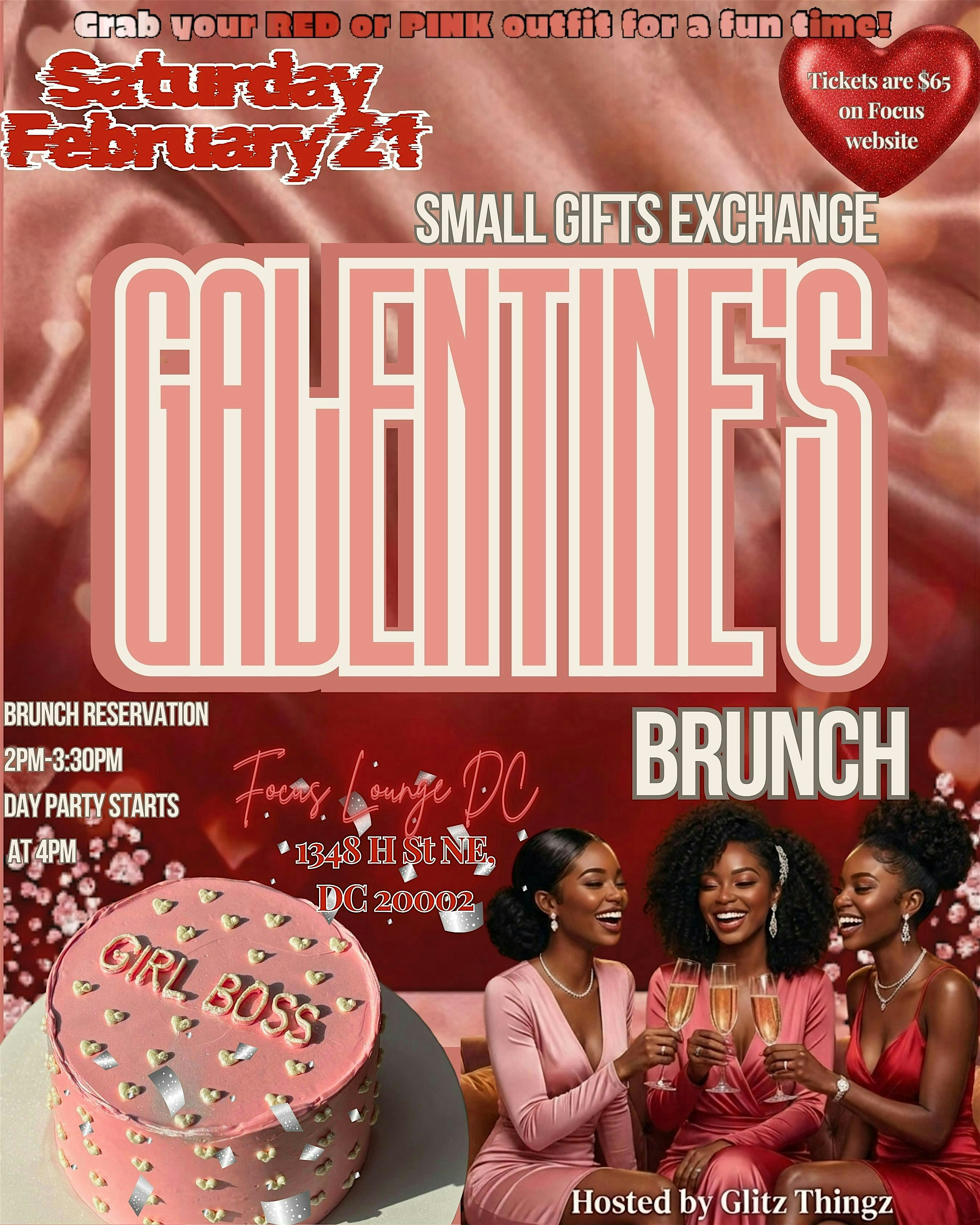 by admin13Feb Small Gifts Exchange Galentine’s Brunch at Focus Social Club – Washington, DC Small Gifts Exchange Galentine’s Brunch at Focus Social Club – Washington, DC 2 2 people viewed this event. Ladies this is for RSVP purposes, we’re doing the small gifts exchange trend and Party Brunch at Focus. Dress code: Pink or Red Tickets-RSVP Link Date And Time Saturday, February 21st, 2026 07:00 PM (PST) Venue Focus Social Club Location 1348 H Street Northeast, Washington, DC 20002 Event Types Community & CultureParty or Social Gathering Event Category Washington DC Share With Friends Facebook Twitter Linkedin Xing Pinterest Share This Post: