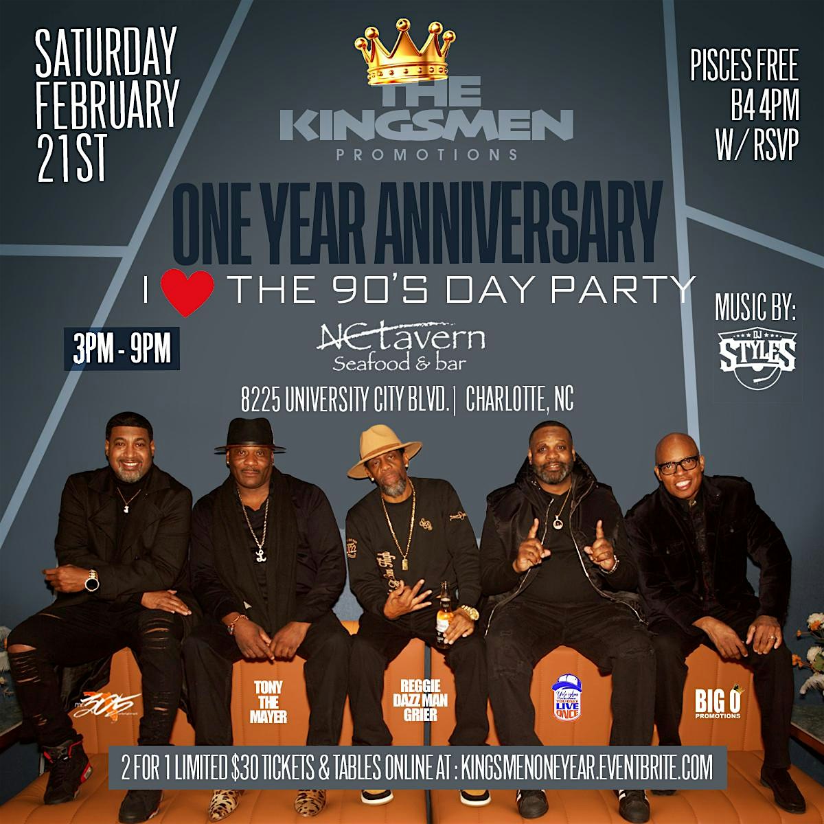 by admin12Feb THE KINGSMEN ONE YEAR ANNIVERSARY I LOVE THE 90’s DAY PARTY at NC Tavern – Charlotte, NC THE KINGSMEN ONE YEAR ANNIVERSARY I LOVE THE 90’s DAY PARTY at NC Tavern – Charlotte, NC 3 3 people viewed this event. THE KINGSMEN ONE YEAR ANNIVERSARY I LOVE THE 90’s DAY PARTY MUSIC BY: DJ STYLES SATUR-DAY FEBRUARY 21ST AT NC TAVERN 8225 UNIVERSITY CITY BL Tickets-RSVP Link Date And Time Saturday, February 21st, 2026 08:00 PM (PST) Venue NC Tavern Location 8225 University City Boulevard, Charlotte, NC 28213 Event Types MusicParty or Social Gathering Event Category CharlotteNorth Carolina Share With Friends Facebook Twitter Linkedin Xing Pinterest Share This Post: