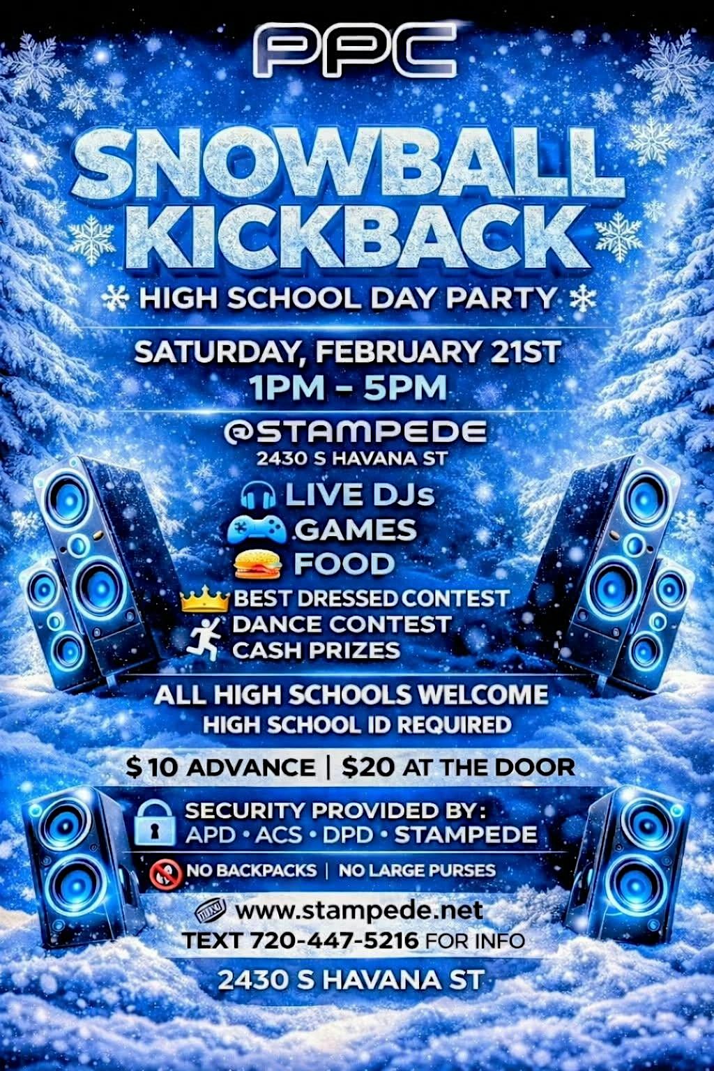 by admin12Feb The Snow Ball Kickback at Stampede – Aurora, CO The Snow Ball Kickback at Stampede – Aurora, CO 2 2 people viewed this event. Get ready to dance and chill at The Snow Ball Kickback—where cool vibes meet hot moves! Tickets-RSVP Link Date And Time Saturday, February 21st, 2026 08:00 PM (PST) Venue Stampede Location 2430 South Havana Street, Aurora, CO 80014 Event Types Party or Social GatheringSeasonal & Holiday Event Category ColoradoDenver Share With Friends Facebook Twitter Linkedin Xing Pinterest Share This Post: