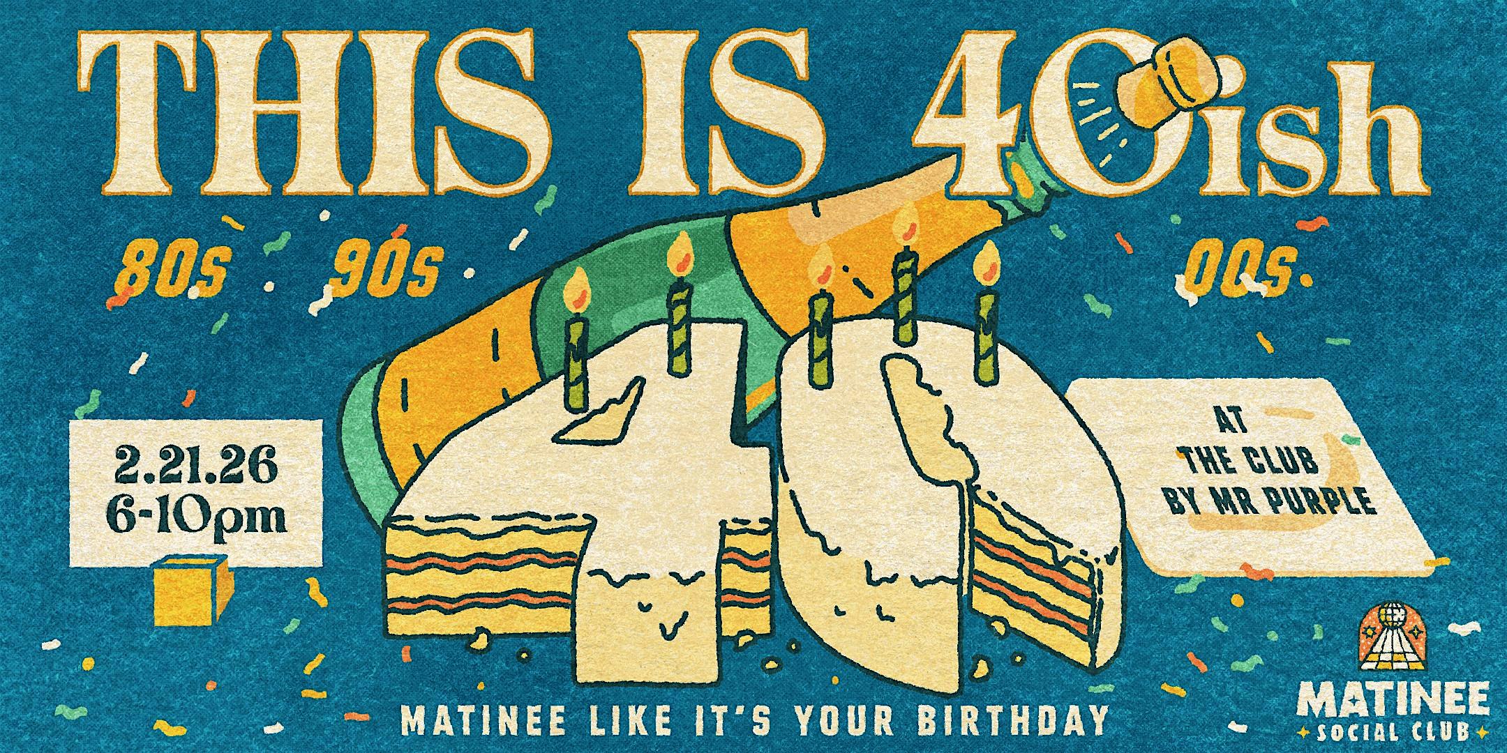 by admin12Feb This is 40ish [80s-00s] at The Club by Mr. Purple – New York, NY This is 40ish [80s-00s] at The Club by Mr. Purple – New York, NY 1 1 people viewed this event. A Matinee dance party celebrating the 40ish lifestyle with 80s, 90s, & 00s throwbacks. Tickets-RSVP Link Date And Time Saturday, February 21st, 2026 11:00 PM (PST) Venue The Club by Mr. Purple Location 180 Orchard Street, New York, NY 10002 Event Types MusicParty or Social Gathering Event Category New YorkNew York City Share With Friends Facebook Twitter Linkedin Xing Pinterest Share This Post: