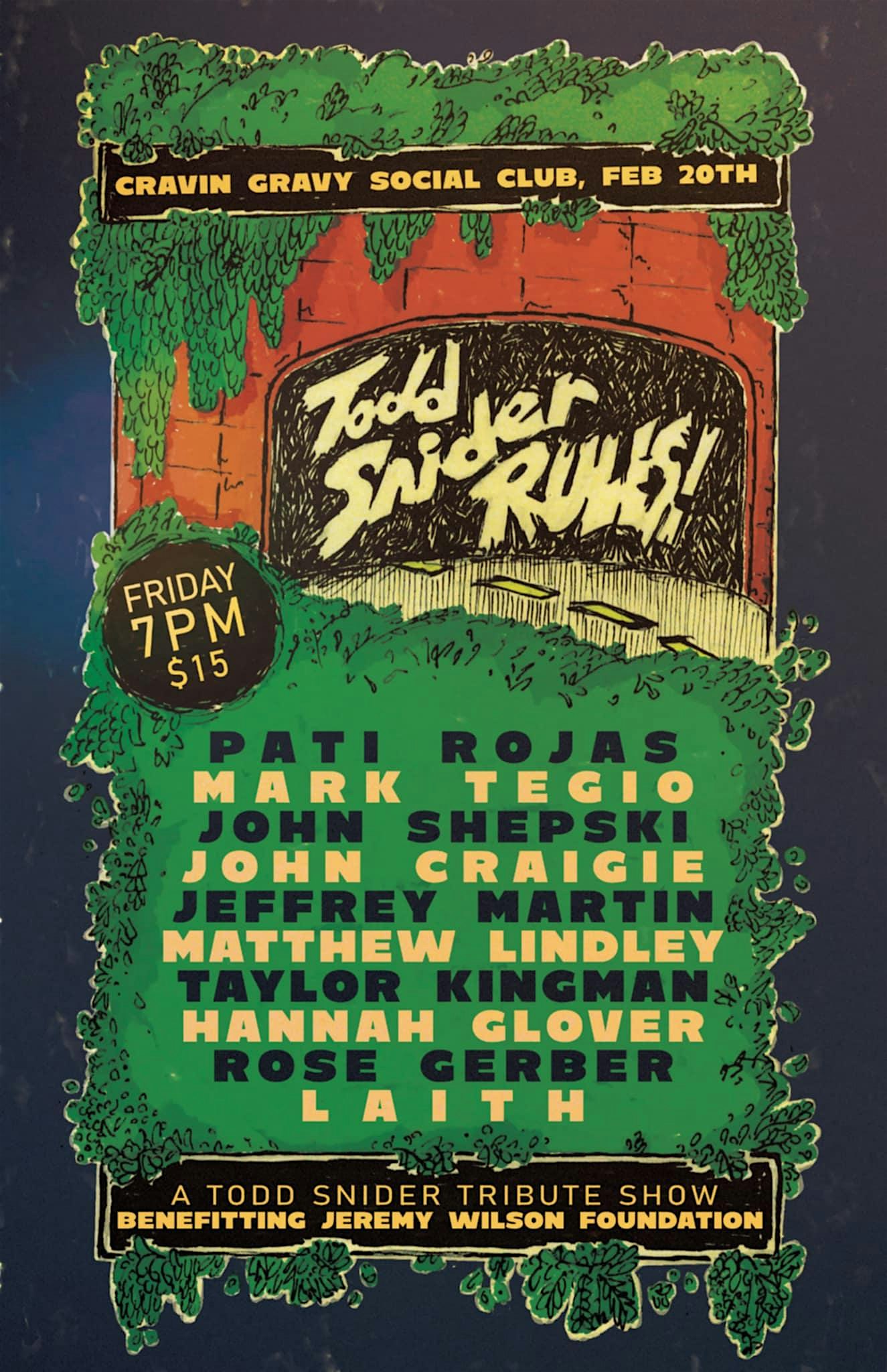 by admin12Feb Todd Snider Tribute – Cravin’ Gravy Social Club at 665 N Tillamook St – Portland, OR Todd Snider Tribute – Cravin’ Gravy Social Club at 665 N Tillamook St – Portland, OR 1 1 people viewed this event. An evening celebrating the music of Todd Snider with proceeds benefitting Mental Health Wellness for Musicians via Jeremy Wilson Foundation Tickets-RSVP Link Date And Time Saturday, February 21st, 2026 03:00 AM (PST) Venue 665 N Tillamook St Location 665 North Tillamook Street, Portland, OR 97227 Event Types Concert or PerformanceMusic Event Category OregonPortland Share With Friends Facebook Twitter Linkedin Xing Pinterest Share This Post: