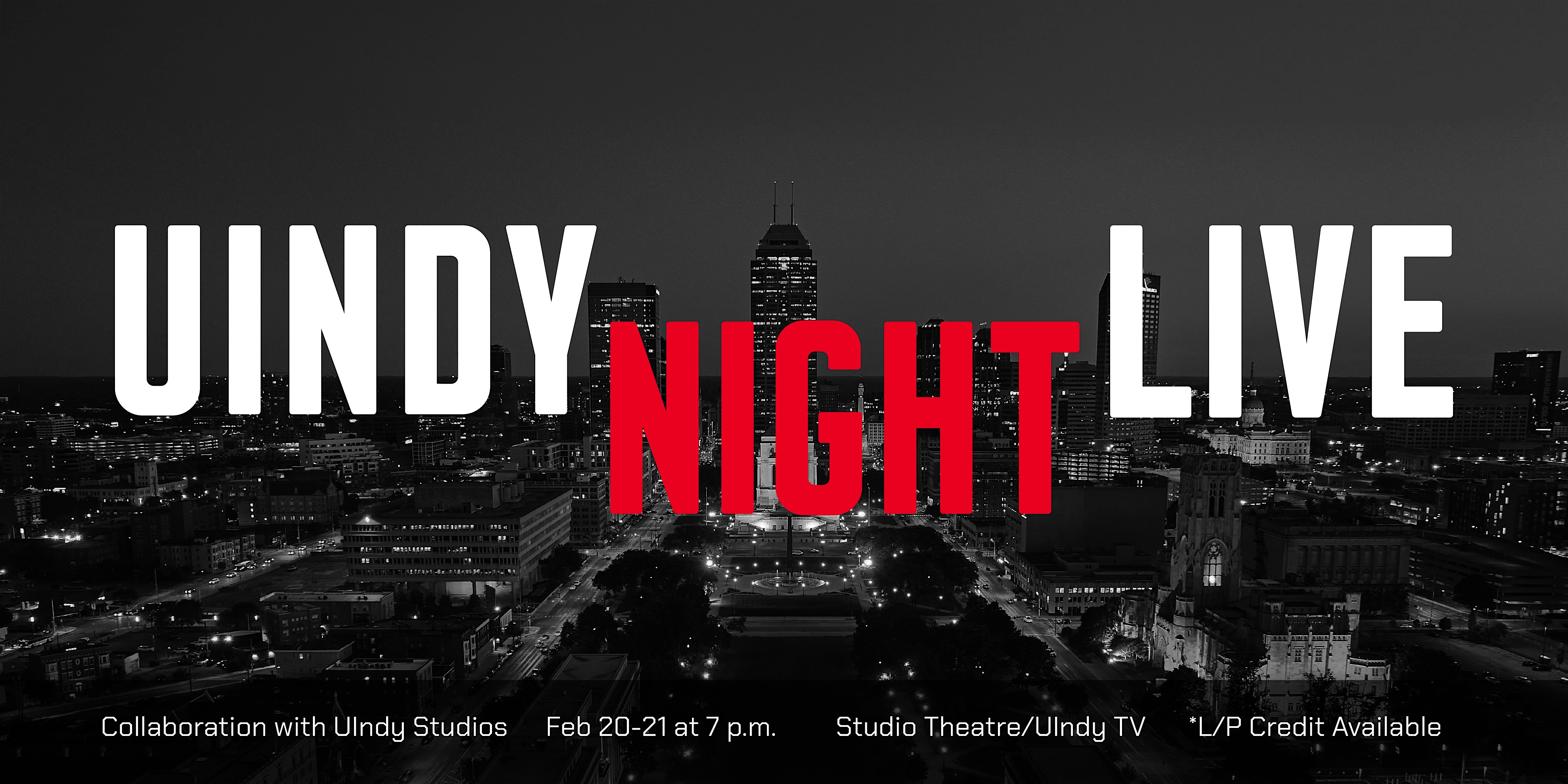 by admin12Feb UIndy Night Live at Studio Theatre- Esch Hall – Indianapolis, IN UIndy Night Live at Studio Theatre- Esch Hall – Indianapolis, IN 1 1 people viewed this event. A presentation of live entertainment from UIndy students, live in the Studio and live on UIndy TV. Tickets-RSVP Link Date And Time Saturday, February 21st, 2026 12:00 AM (PST) Venue Studio Theatre- Esch Hall Location 1400 East Hanna Avenue, Indianapolis, IN 46227 Event Types Concert or PerformancePerforming & Visual Arts Event Category IndianaIndianapolis Share With Friends Facebook Twitter Linkedin Xing Pinterest Share This Post: