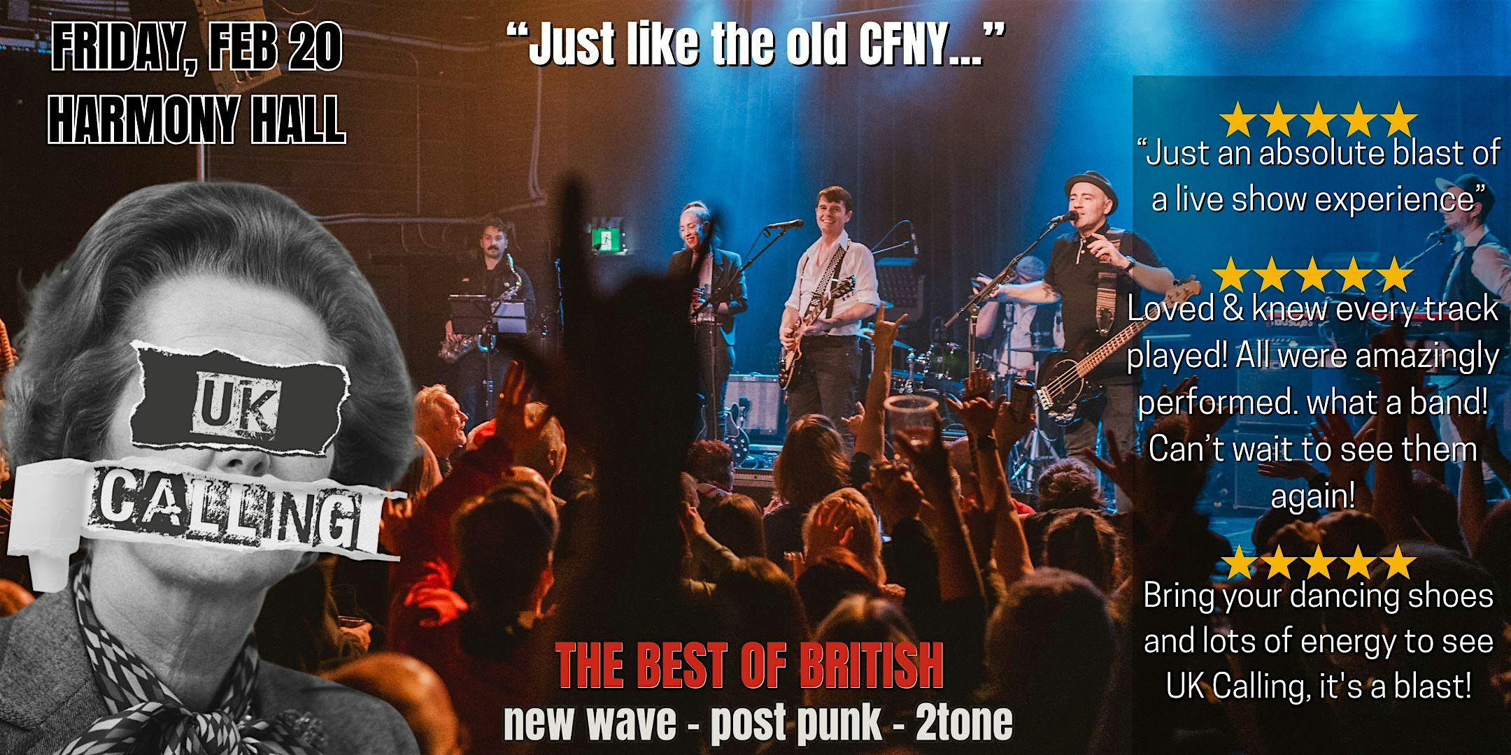 by admin13Feb UK Calling – Live at Harmony Hall at Harmony Hall – Gormley, Canada UK Calling – Live at Harmony Hall at Harmony Hall – Gormley, Canada 2 2 people viewed this event. UK Calling bring the best of British New Wave, Post Punk and 2Tone Ska to Stouffville on Friday, Feb 20 Tickets-RSVP Link Date And Time Saturday, February 21st, 2026 01:00 AM (PST) Venue Harmony Hall Location 14663 Woodbine Avenue, Gormley, Canada L4A 2K8 Event Types Concert or PerformanceMusic Event Category Canada Share With Friends Facebook Twitter Linkedin Xing Pinterest Share This Post: