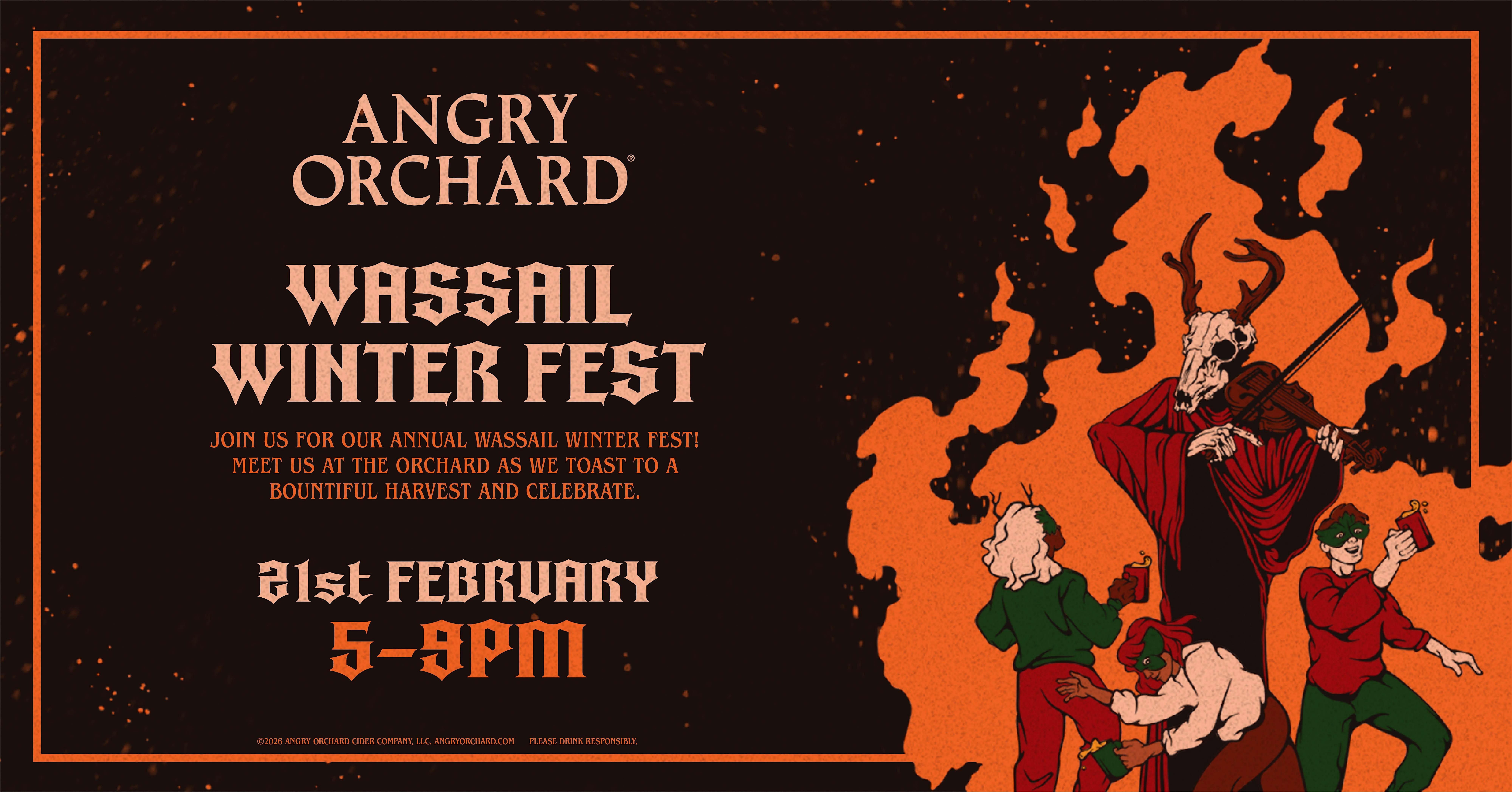 by admin12Feb Wassail Winter Fest at Angry Orchard Cider House – Walden, NY Wassail Winter Fest at Angry Orchard Cider House – Walden, NY 3 3 people viewed this event. Join us at Wassail Winter Fest for acelebration of the season with hot cider, live music, and festive activities! Tickets-RSVP Link Date And Time Saturday, February 21st, 2026 10:00 PM (PST) Venue Angry Orchard Cider House Location 2241 Albany Post Road, Walden, NY 12586 Event Types Festival or FairFood & Drink Event Category New York Share With Friends Facebook Twitter Linkedin Xing Pinterest Share This Post: