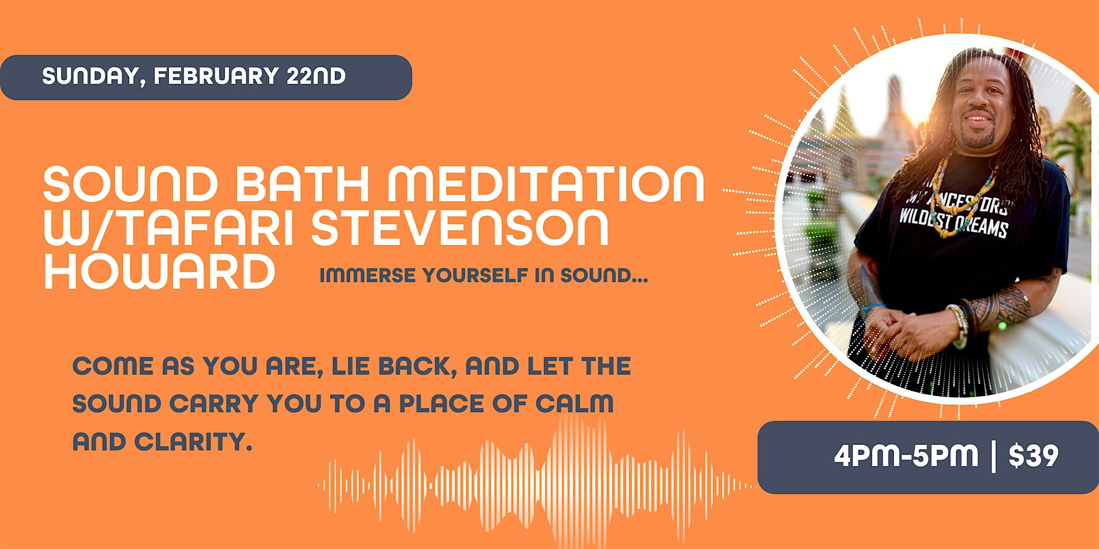 by admin13Feb 12 Years of Sound! Sound Bath Meditation with Tafari Stevenson Howard at DRIP’T Wellness & Lounge – Riverdale Park, MD 12 Years of Sound! Sound Bath Meditation with Tafari Stevenson Howard at DRIP’T Wellness & Lounge – Riverdale Park, MD 1 1 people viewed this event. Chill out and vibe deep with Tafari Stevenson Howard’s sound bath celebrating 12 years of soothing waves! Tickets-RSVP Link Date And Time Sunday, February 22nd, 2026 09:00 PM (PST) Venue DRIP’T Wellness & Lounge Location 6202 Rhode Island Avenue, Riverdale Park, MD 20737 Event Category Maryland Share With Friends Facebook Twitter Linkedin Xing Pinterest Share This Post: