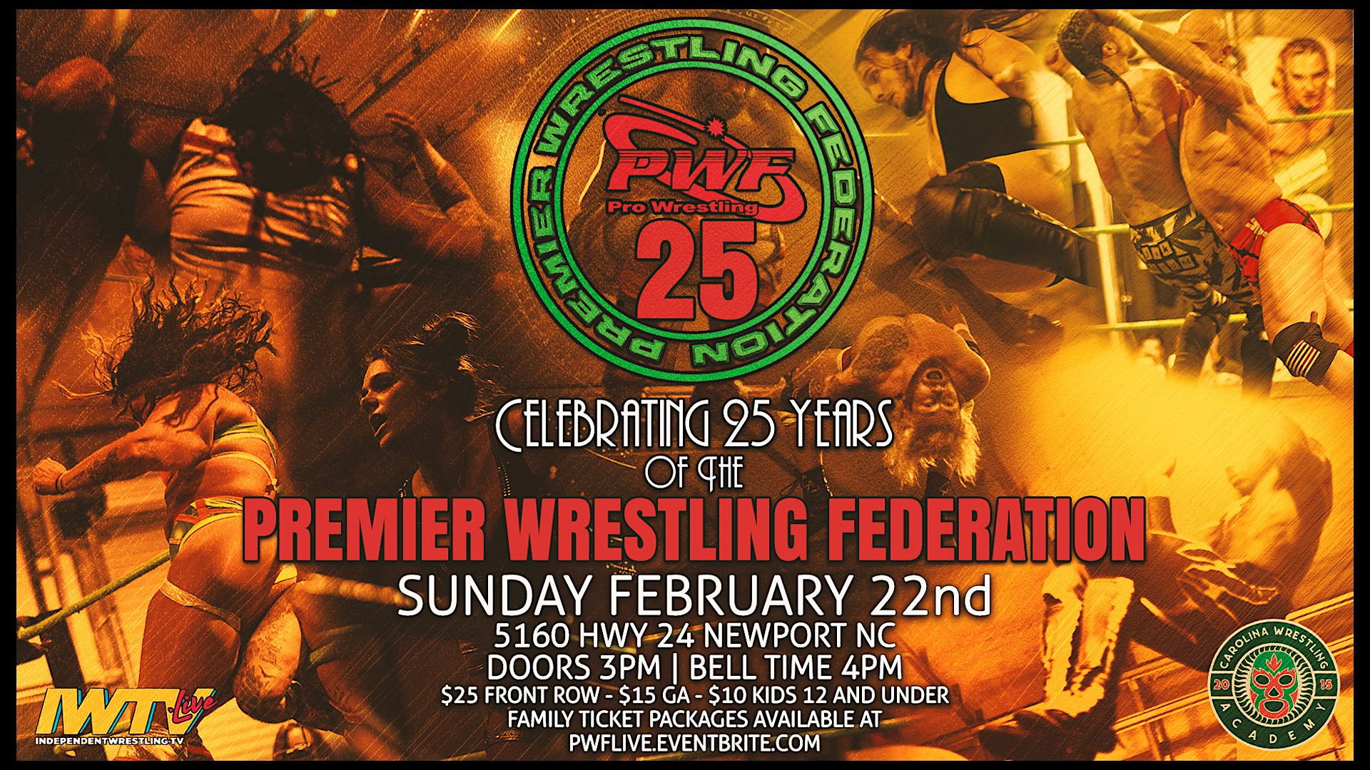 by admin12Feb 25 Years of PWF at Carolina Wrestling Academy – Newport, NC 25 Years of PWF at Carolina Wrestling Academy – Newport, NC 5 5 people viewed this event. The PWF returns to the Carolina Wrestling Academy on Sunday, February 22 with a 4pm Belltime! Tickets-RSVP Link Date And Time Sunday, February 22nd, 2026 08:00 PM (PST) Venue Carolina Wrestling Academy Location 5160 North Carolina 24, Newport, NC 28570 Event Types Sports & Fitness Event Category North Carolina Share With Friends Facebook Twitter Linkedin Xing Pinterest Share This Post:
