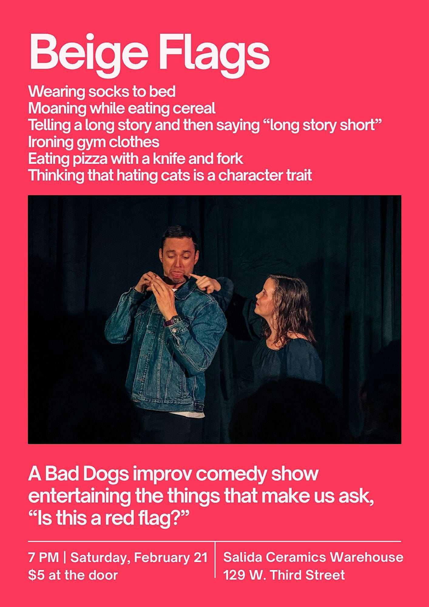 by admin12Feb Beige Flags – An Improv Comedy show at 129 W 3rd St – Salida, CO Beige Flags – An Improv Comedy show at 129 W 3rd St – Salida, CO 5 5 people viewed this event. An improv comedy show brought to you by Salida Improv Movement entertaining all the things that make us ask, “Is this a red flag?” Tickets-RSVP Link Date And Time Sunday, February 22nd, 2026 02:00 AM (PST) Venue 129 W 3rd St Location 129 West 3rd Street, Salida, CO 81201 Event Types Concert or PerformancePerforming & Visual Arts Event Category Colorado Share With Friends Facebook Twitter Linkedin Xing Pinterest Share This Post: