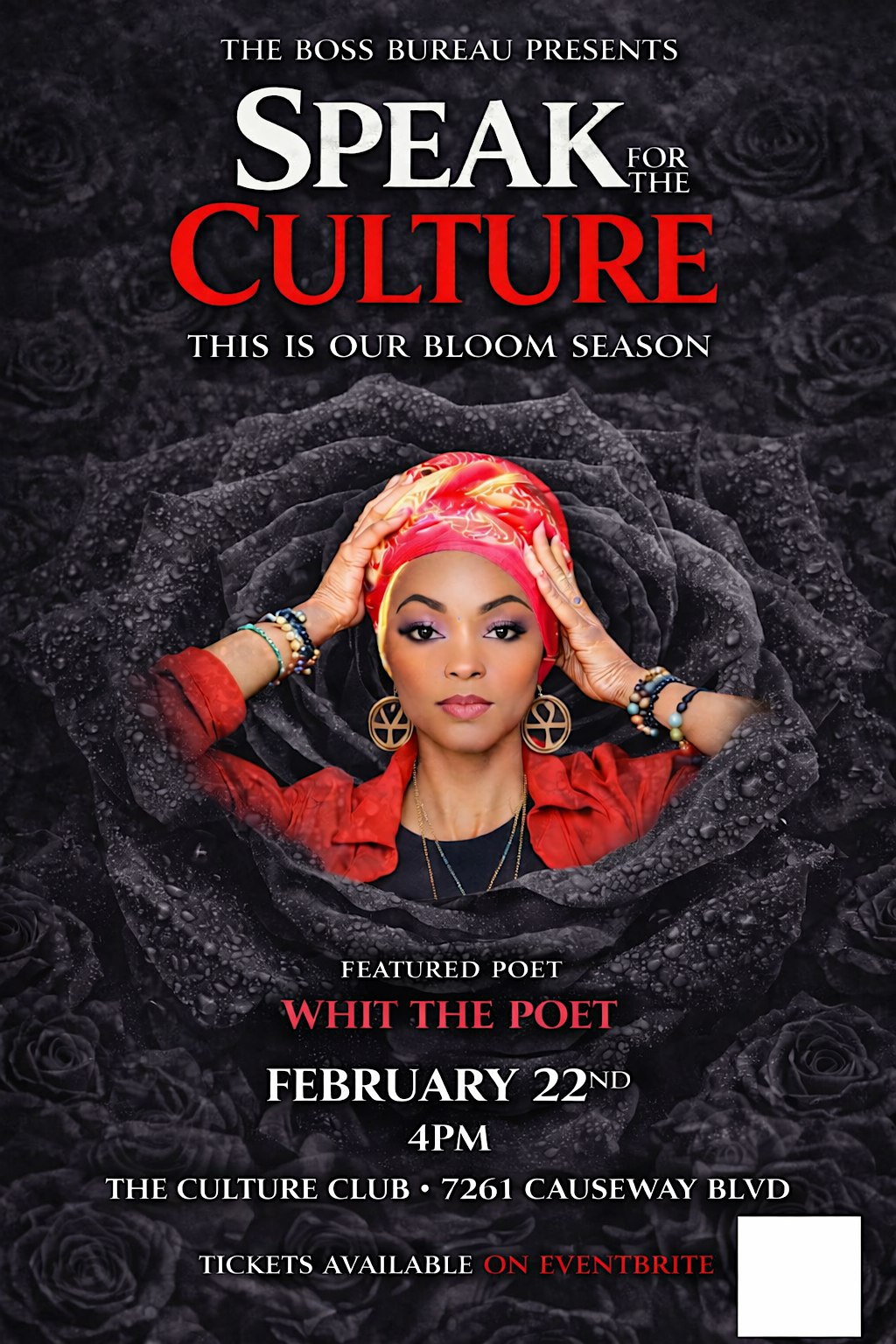 by admin13Feb Black Rose Edition-Speak for the Culture at Speak for the Culture – Tampa, FL Black Rose Edition-Speak for the Culture at Speak for the Culture – Tampa, FL 2 2 people viewed this event. Black Rose Edition-Speak for the Culture is a one of a kind in-person vibe where we celebrate and voice our culture loud and proud! Tickets-RSVP Link Date And Time Sunday, February 22nd, 2026 09:00 AM (PST) Venue Speak for the Culture Location 7261 Causeway Boulevard, Tampa, FL 33619 Event Types Concert or PerformancePerforming & Visual Arts Event Category FloridaTampa Share With Friends Facebook Twitter Linkedin Xing Pinterest Share This Post: