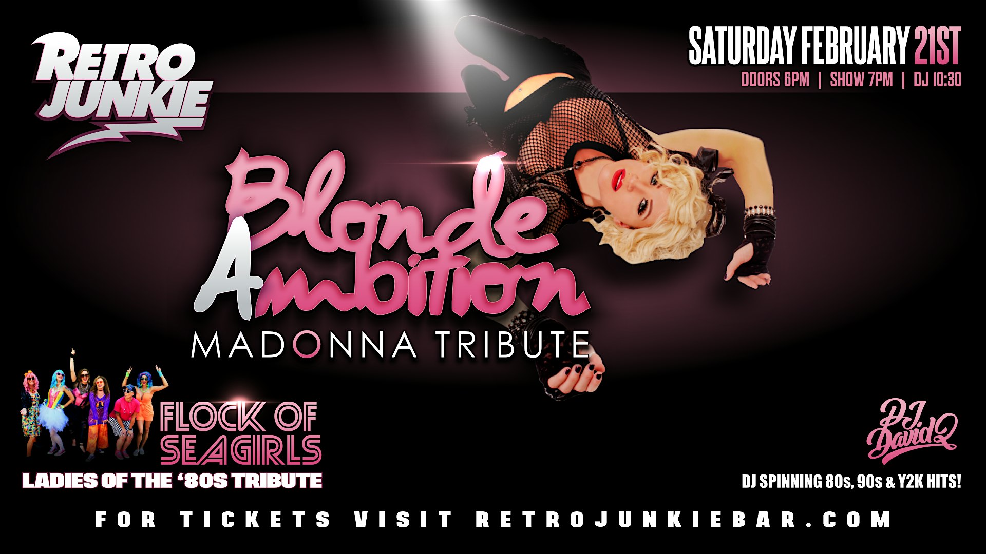 by admin12Feb BLONDE AMBITION (Madonna Tribute) + FLOCK OF SEAGIRLS (80s Ladies Covers) at Retro Junkie – Walnut Creek, CA BLONDE AMBITION (Madonna Tribute) + FLOCK OF SEAGIRLS (80s Ladies Covers) at Retro Junkie – Walnut Creek, CA 6 6 people viewed this event. BLONDE AMBITION (Madonna Tribute) + FLOCK OF SEAGIRLS (80s Ladies Covers) LIVE @ Retro Junkie! Tickets-RSVP Link Date And Time Sunday, February 22nd, 2026 02:00 AM (PST) Venue Retro Junkie Location 2112 North Main Street, Walnut Creek, CA 94596 Event Types Concert or PerformanceMusic Event Category CaliforniaOakland Share With Friends Facebook Twitter Linkedin Xing Pinterest Share This Post: