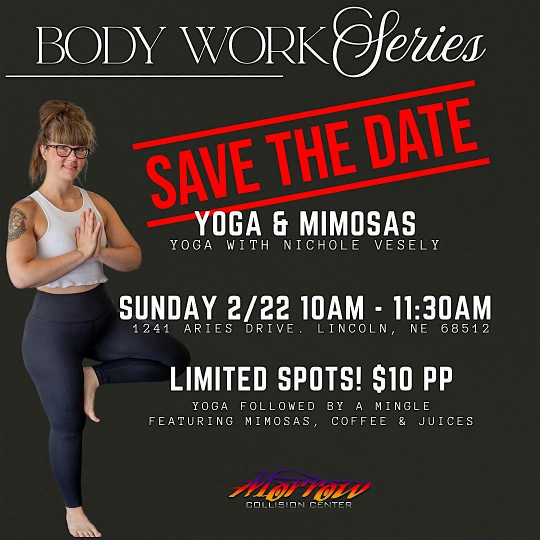 by admin12Feb Body Work Series at the Body Shop 2026 – Yoga with Nichole! at Morrow Collision Center – Aries Dr – Lincoln, NE Body Work Series at the Body Shop 2026 – Yoga with Nichole! at Morrow Collision Center – Aries Dr – Lincoln, NE 4 4 people viewed this event. Chill out and stretch it all out with Nichole’s awesome yoga sesh at Body Work Series 2026—see you there! Tickets-RSVP Link Date And Time Sunday, February 22nd, 2026 04:00 PM (PST) Venue Morrow Collision Center - Aries Dr Location 1241 Aries Drive, Lincoln, NE 68512 Event Category Nebraska Share With Friends Facebook Twitter Linkedin Xing Pinterest Share This Post: