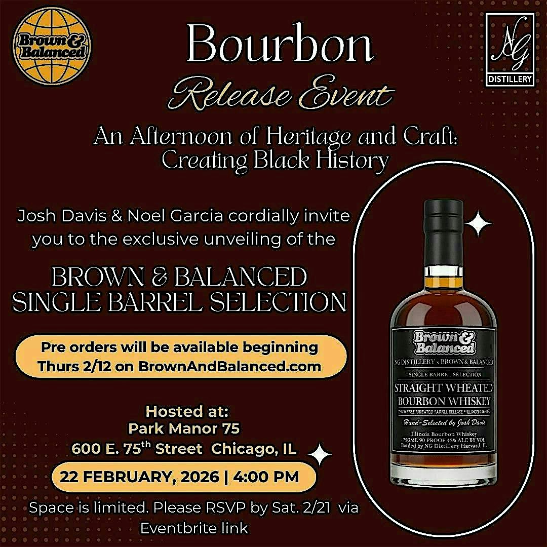 by admin13Feb Brown & Balanced x NG Distillery:Private Bourbon Barrel Select Experience at Park Manor 75 – Chicago, IL Brown & Balanced x NG Distillery:Private Bourbon Barrel Select Experience at Park Manor 75 – Chicago, IL 1 1 people viewed this event. History in the glass. Culture in the room. Community at the center. Join us as Brown & Balanced proudly debuts a limited-edition Bourbon Tickets-RSVP Link Date And Time Sunday, February 22nd, 2026 10:00 PM (PST) Venue Park Manor 75 Location 600 East 75th Street, Chicago, IL 60619 Event Types Food & Drink Event Category ChicagoIllinois Share With Friends Facebook Twitter Linkedin Xing Pinterest Share This Post: