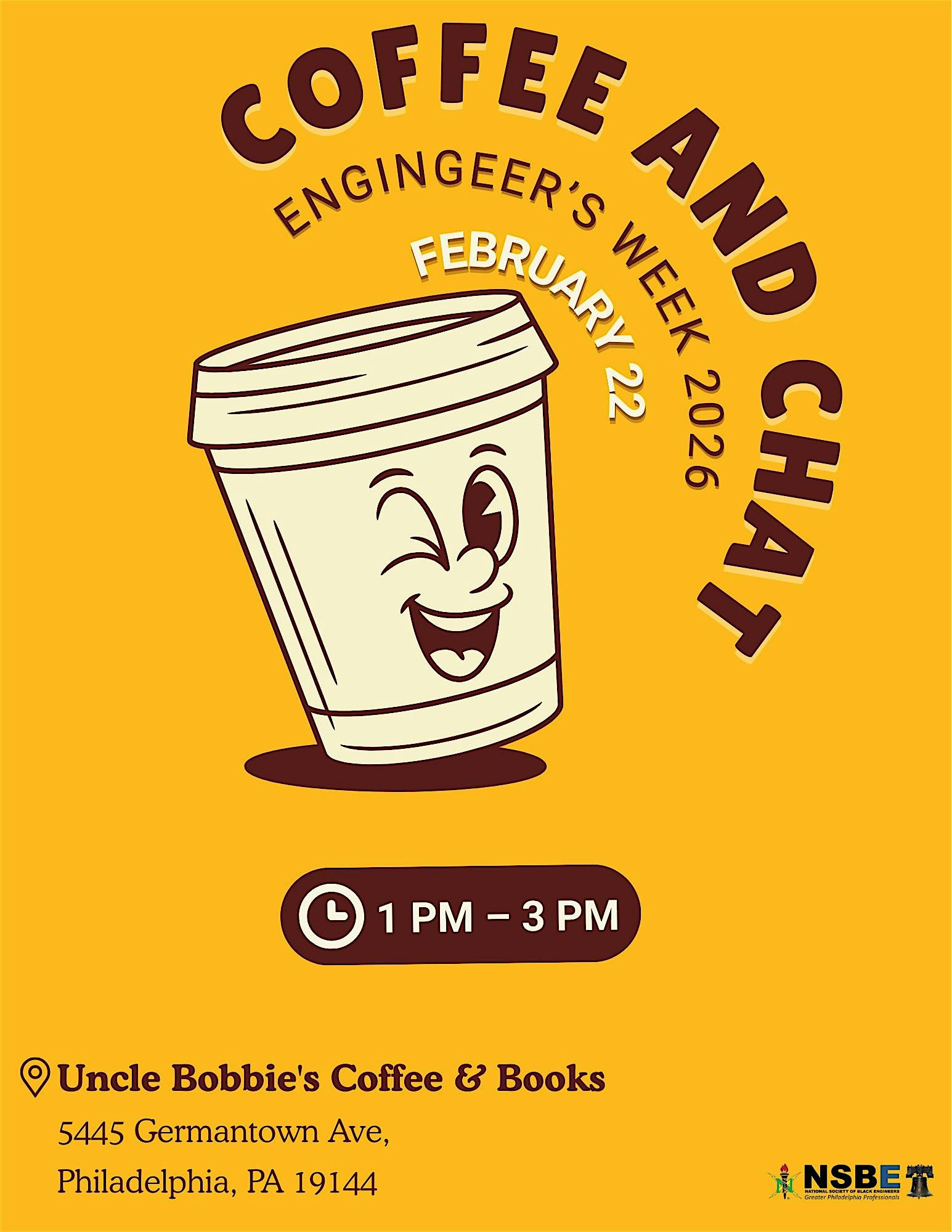 by admin13Feb Coffee and Chat at Uncle Bobbies Coffee and Books at Uncle Bobbie’s Coffee & Books – Philadelphia, PA Coffee and Chat at Uncle Bobbies Coffee and Books at Uncle Bobbie’s Coffee & Books – Philadelphia, PA 1 1 people viewed this event. Grab your coffee and join us at Uncle Bobbies Coffee and Books for good vibes and great chats! Tickets-RSVP Link Date And Time Sunday, February 22nd, 2026 06:00 PM (PST) Venue Uncle Bobbie's Coffee & Books Location 5445 Germantown Avenue, Philadelphia, PA 19144 Event Types Community & Culture Event Category PennsylvaniaPhiladelphia Share With Friends Facebook Twitter Linkedin Xing Pinterest Share This Post: